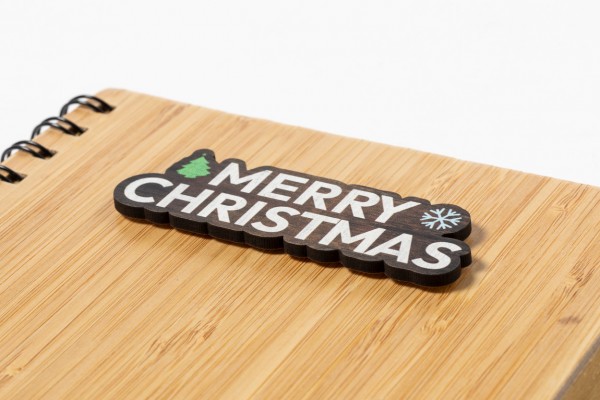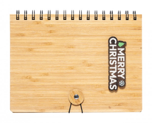 Caiet cu spirală, acoperit cu bambus, cu design de Crăciun și 80 de file dictando, din hârtie reciclată.