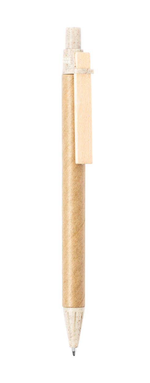 Pix din hârtie reciclată, cu părți din plastic ecologic din paie de grâu și clemă din lemn. Cu mină albastră.