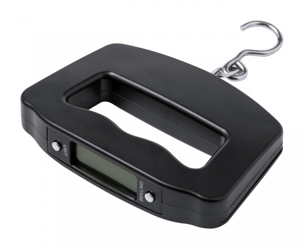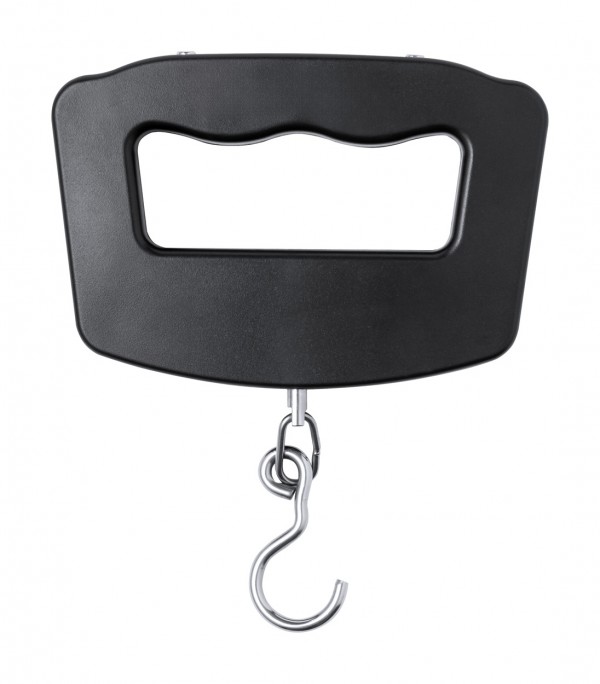 Portable, digital weighing scale with ergonomic handle, LCD screen and metal hook. Operates with 2 AAA batteries, without batteries.