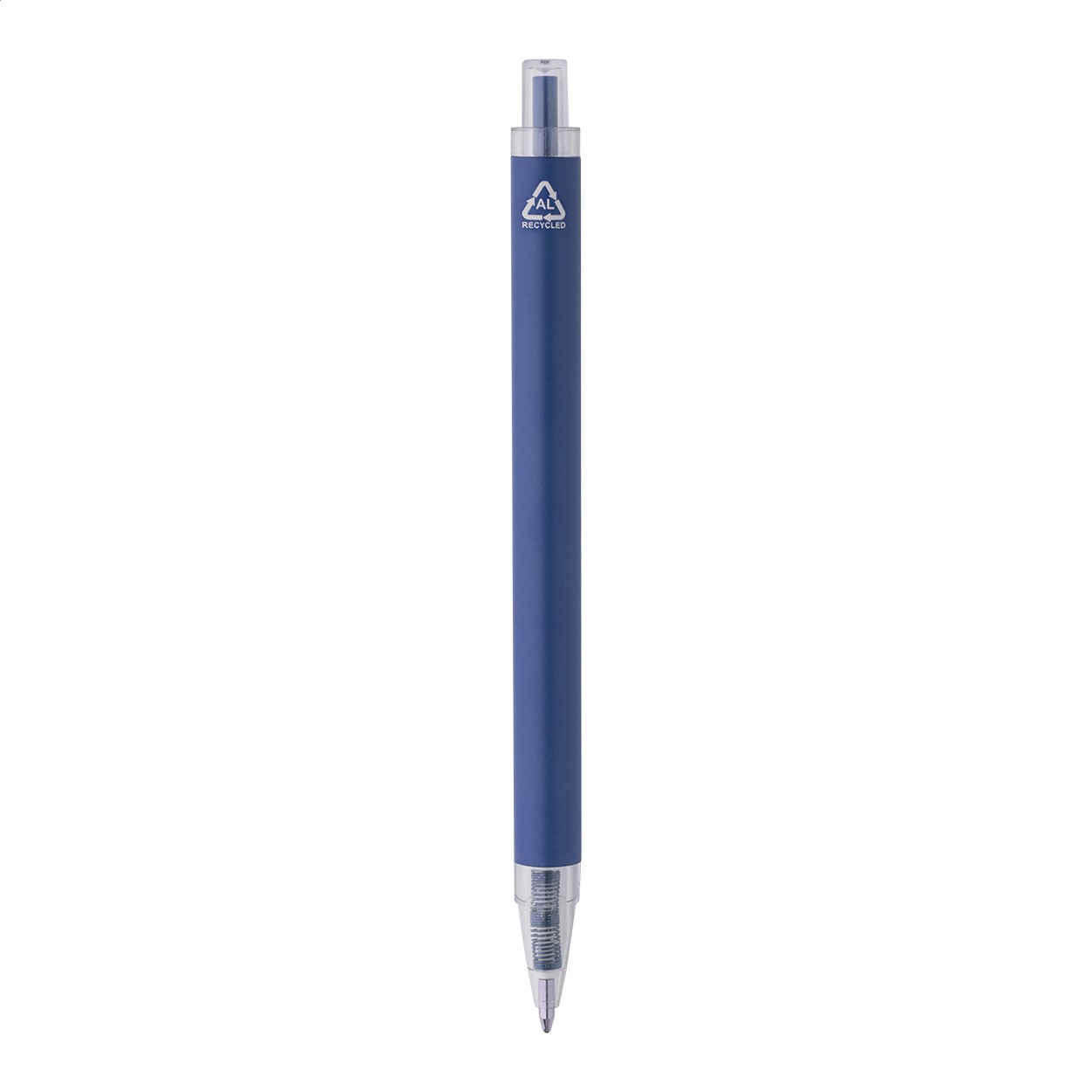 Pix din aluminiu reciclat, cu corp mat și piese transparente din RPET. Cu mină albastră.