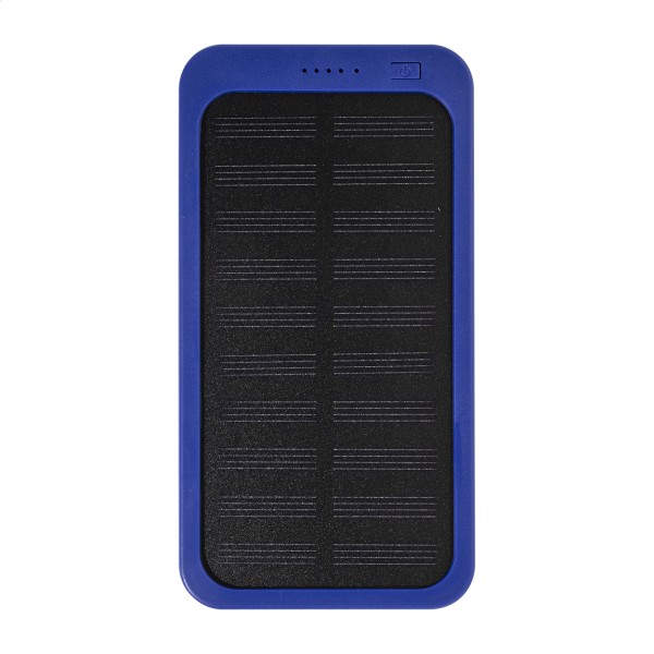 Baterie externă, din ABS reciclat, cu încărcător solar încorporat și baterie de 4000 mAh. Cu 1 port USB și 1 port USB-C pentru încărcare. Port de intrare USB-C. Include cablu de încărcare USB.