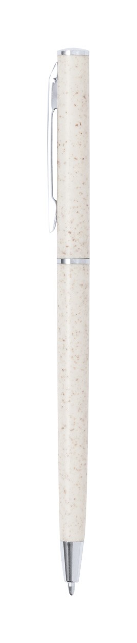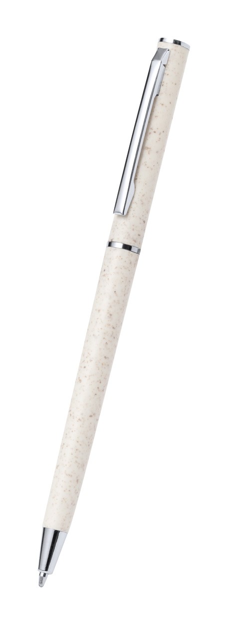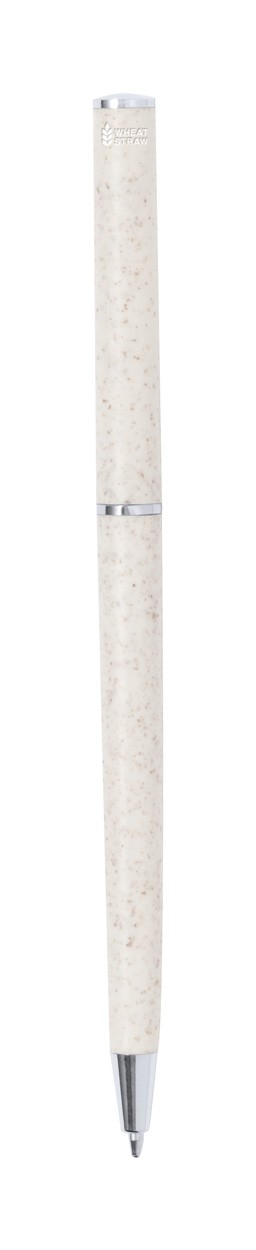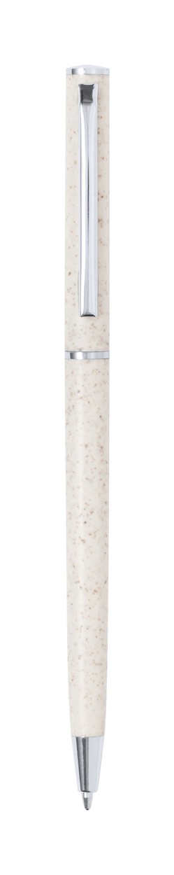 Pix din plastic din paie de grâu, cu detalii metalice și mină albastră.