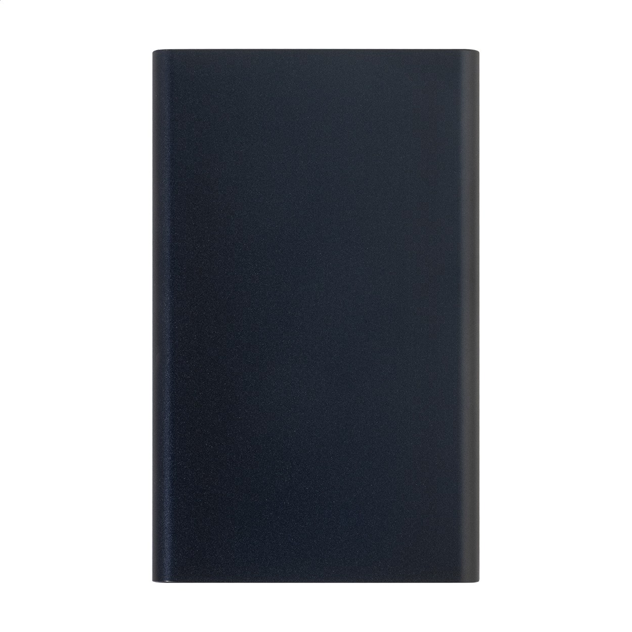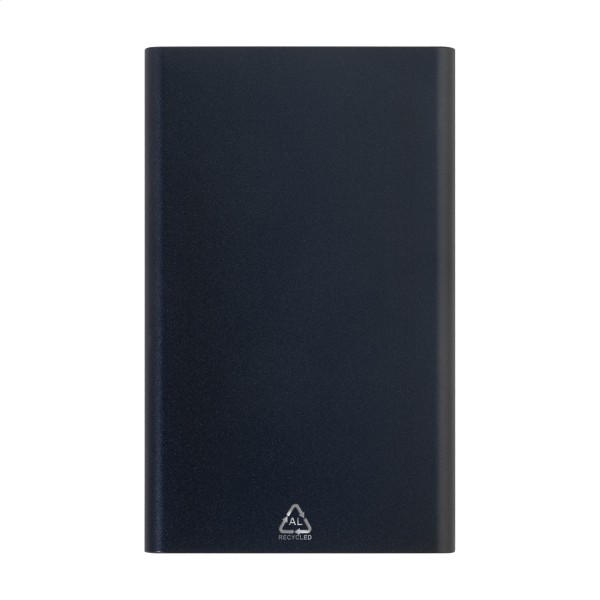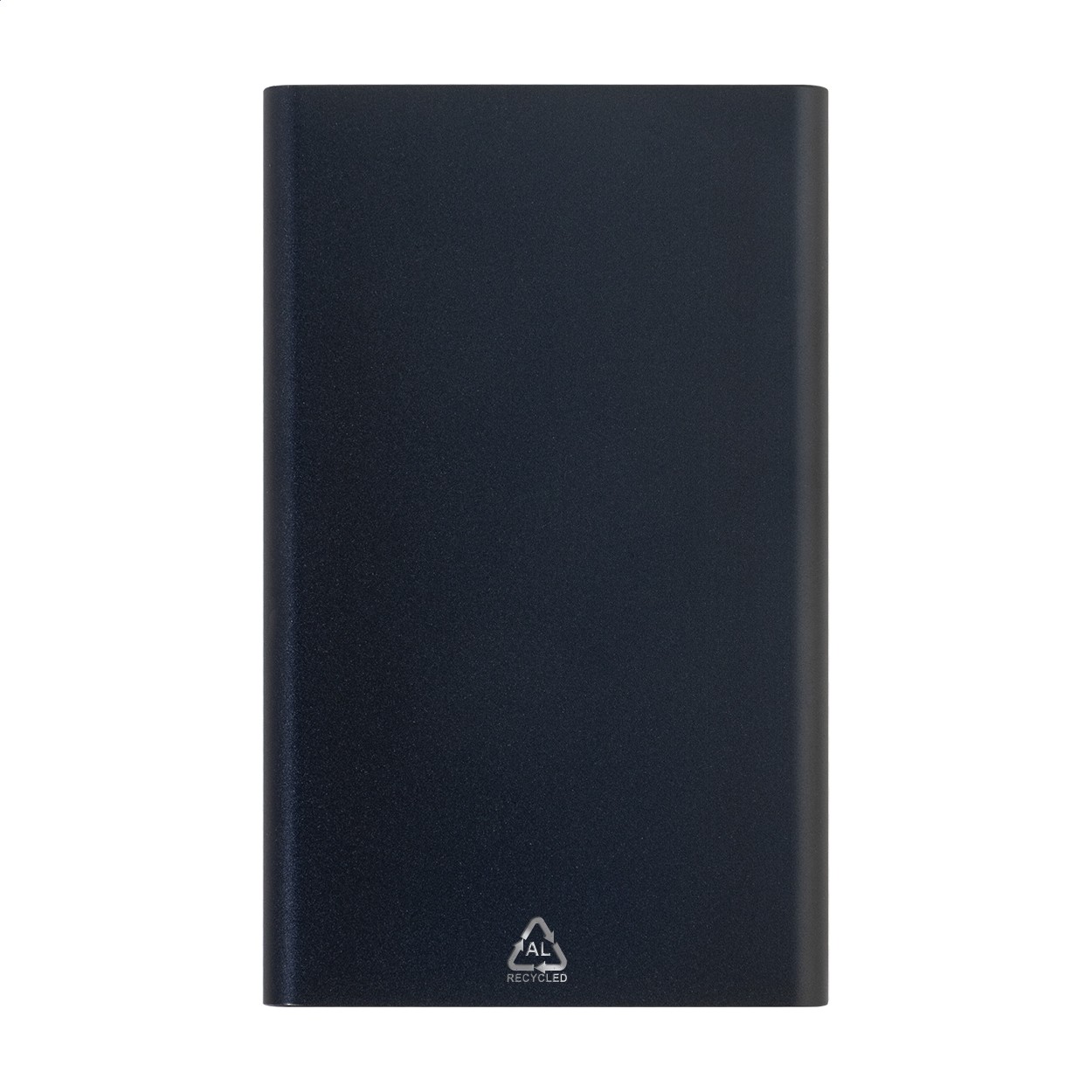 Baterie externă cu USB, în carcasă din aluminiu reciclat, cu baterie de 4000 mAh. Cu 1 port USB și 1 port USB-C pentru încărcător. Port de intrare USB-C. Inclusiv cablu de încărcare USB.