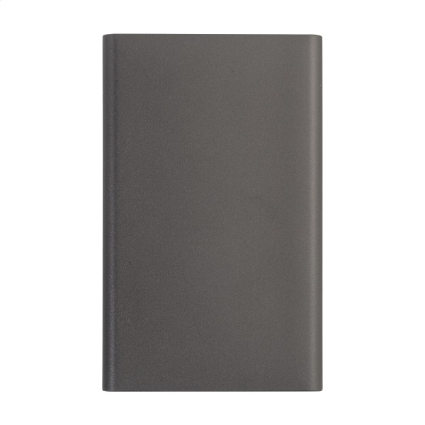 Baterie externă cu USB, în carcasă din aluminiu reciclat, cu baterie de 4000 mAh. Cu 1 port USB și 1 port USB-C pentru încărcător. Port de intrare USB-C. Inclusiv cablu de încărcare USB.