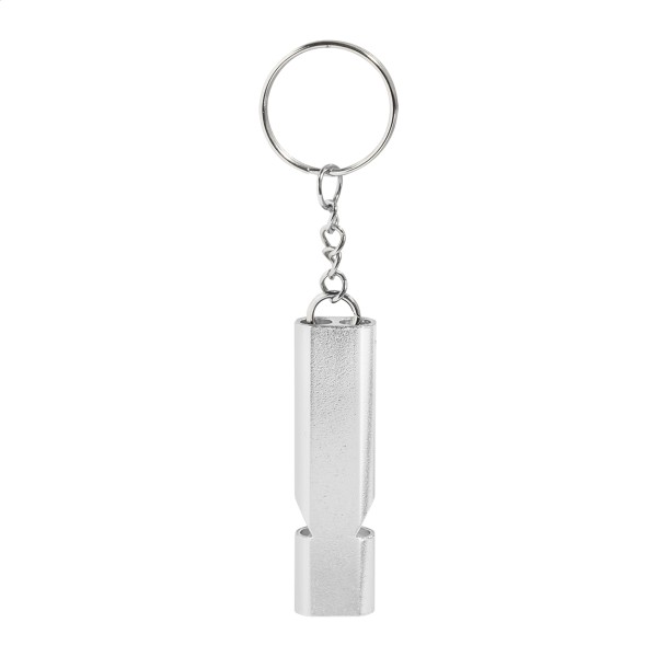 Fluier din aluminiu reciclat, cu breloc metalic.