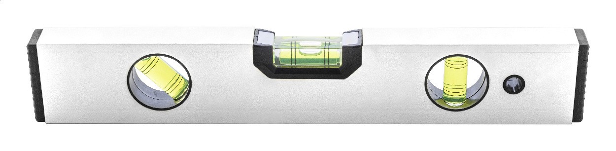 Boloboc din aluminiu reciclat, cu nivele triple (orizontală, verticală și la 45°) și riglă de 30 cm.