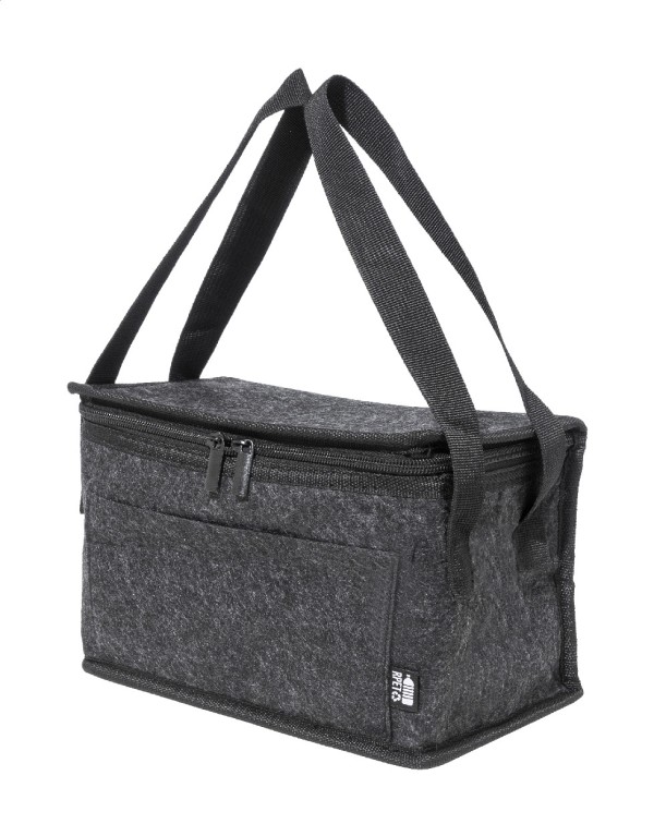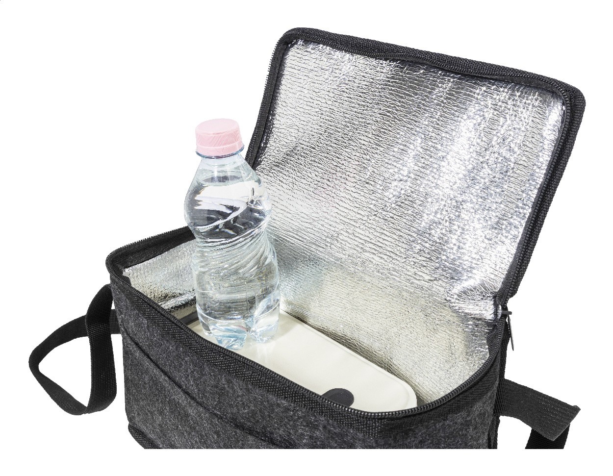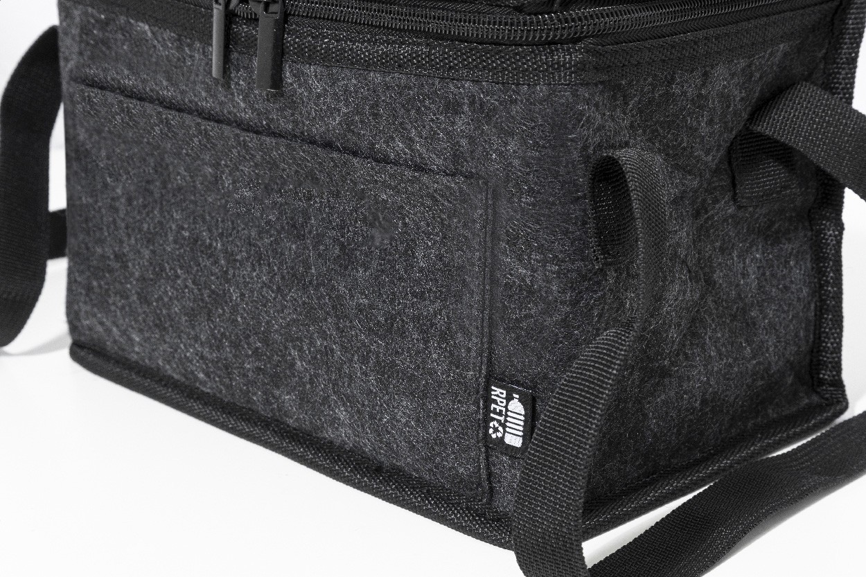 Geantă frigorifică cu fermoar, din fetru RPET, cu căptușeală din aluminiu, buzunar frontal și mânere laterale. Cu etichetă distinctivă RPET.