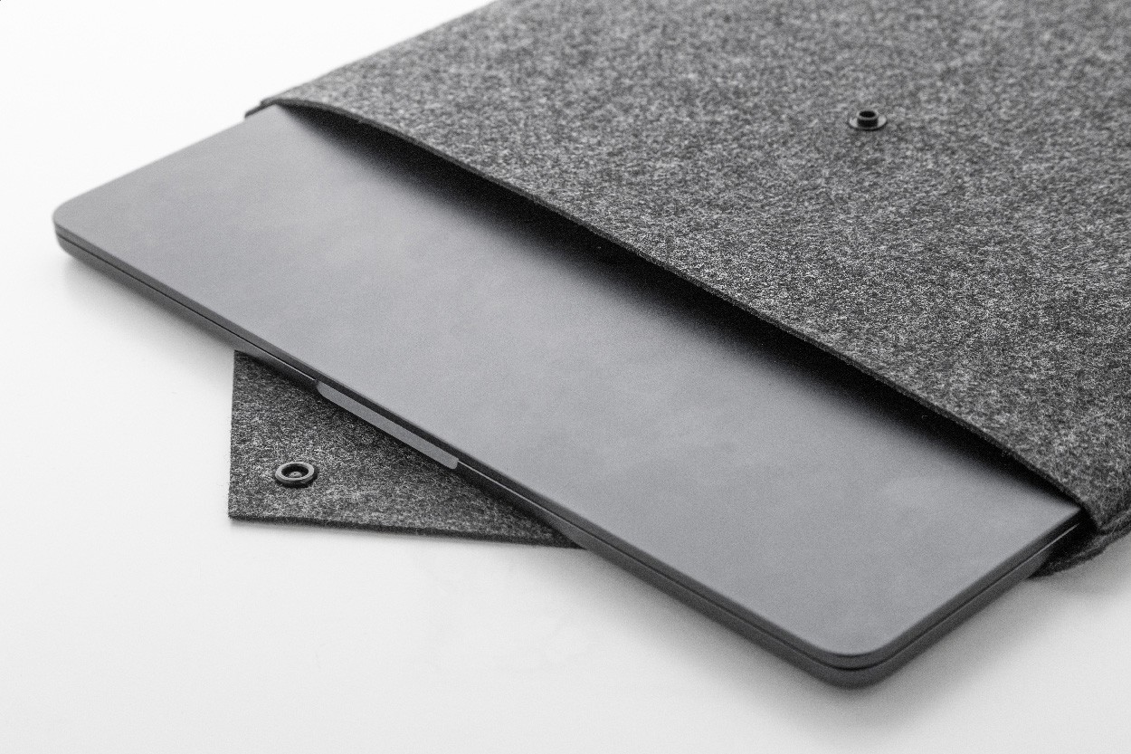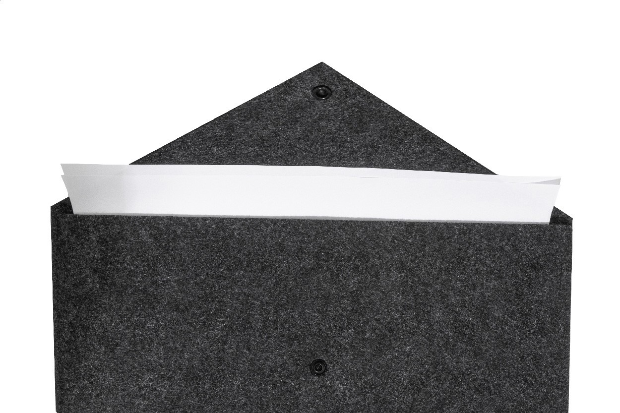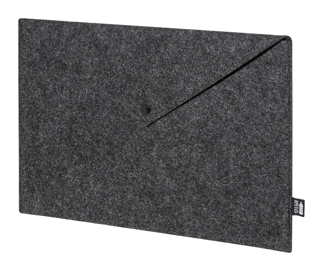 Geantă pentru documente sau laptop, din fetru RPET, cu închidere cu capsă. Potrivită pentru laptopuri de până la 13". Cu etichetă distinctivă din RPET.