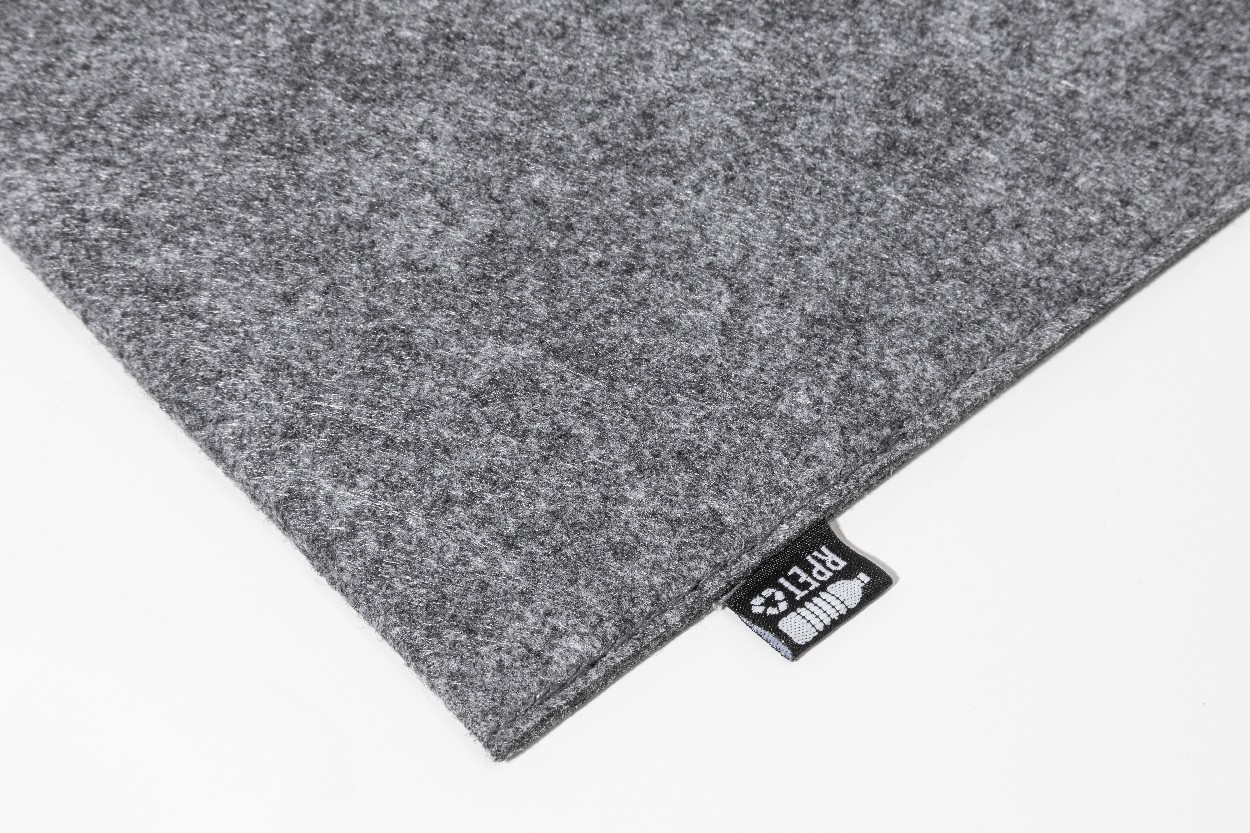 Geantă pentru documente sau laptop, din fetru RPET, cu închidere cu capsă. Potrivită pentru laptopuri de până la 13". Cu etichetă distinctivă din RPET.