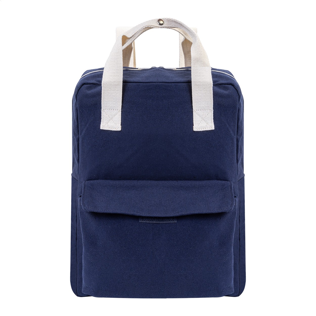 Rucsac din pânză reciclată, cu compartiment principal cu fermoar, compartiment căptușit pentru laptop (13") și buzunar frontal cu închidere cu velcro. 70% bumbac reciclat și 30% poliester RPET. Cu etichetă distinctivă din bumbac reciclat.