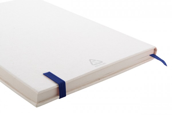 Caiet din hârtie din carton de lapte reciclat, cu copertă rigidă, 80 de foi veline și bandă elastică de culoare asortată. Dimensiune A5.