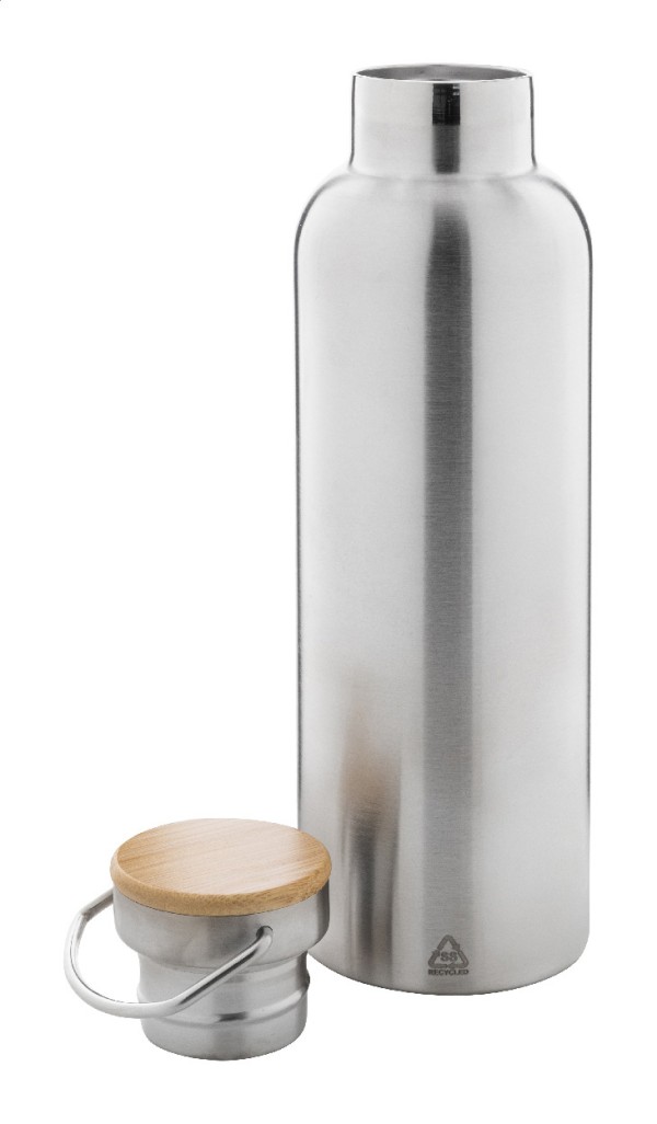 Sticlă termică, cu perete dublu, din oțel inoxidabil reciclat, cu capac de transport din bambus, 750 ml.