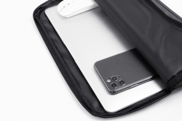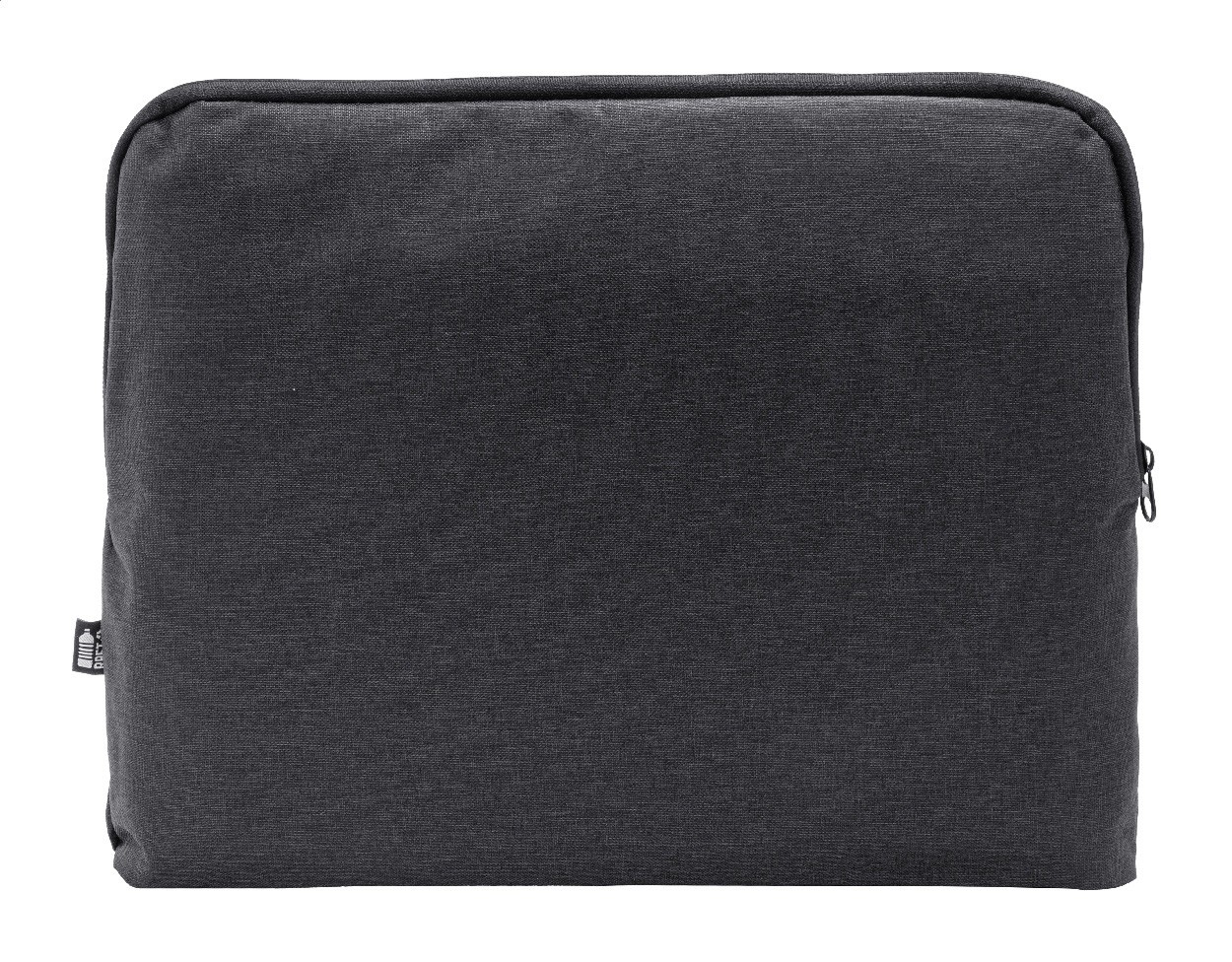 Geantă de laptop, din poliester 600D RPET, cu compartiment cu fermoar și căptușeală interioară. Potrivită pentru laptopuri de până la 15". Cu etichetă distinctivă RPET.