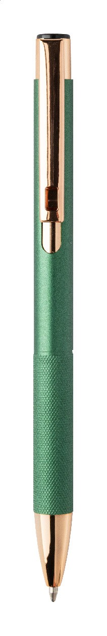 Pix din aluminiu reciclat, cu corp cu finisaj mat, grip texturat și detalii auriu-roz. Cu strat special pentru gravare laser în oglindă, de culoare auriu-roz. Cu mină albastră.