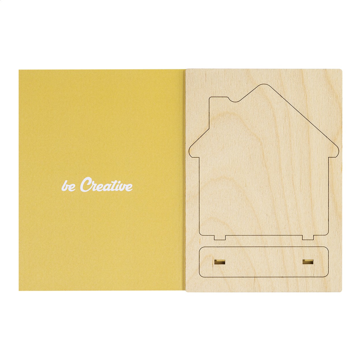 Carte poștală personalizată, din hârtie, cu puzzle artizanal din lemn. Include plic poștal C6. Prețul include imprimarea digitală pe ambele fețe. Cantitate minimă de comandă: 100 bucăți.
