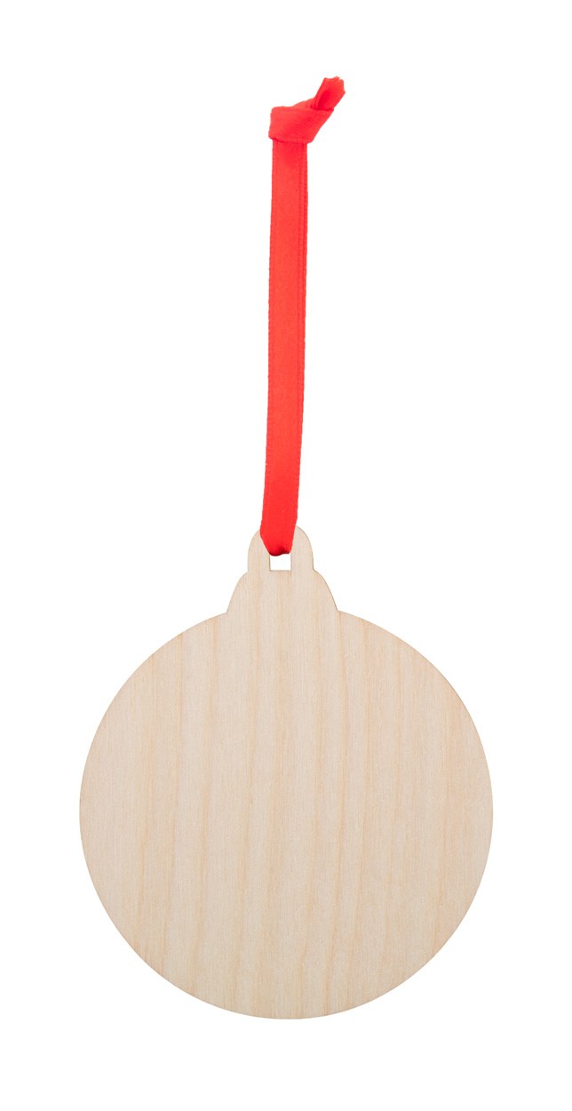 Ornament de brad, din lemn din placaj de mesteacăn, cu design de Crăciun imprimat și panglică rosie. Livrat cu panglică detașată.