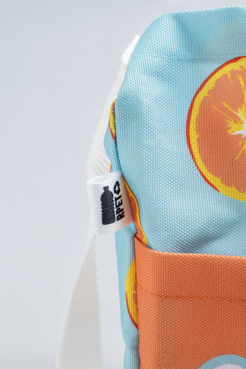 Geantă de umăr, personalizată, din poliester RPET 600D, cu curea de umăr reglabilă și buzunar frontal cu închidere cu capsă. Cu grafică imprimată prin sublimare pe toată suprafața și etichetă distinctivă RPET. MOQ: 25 buc.