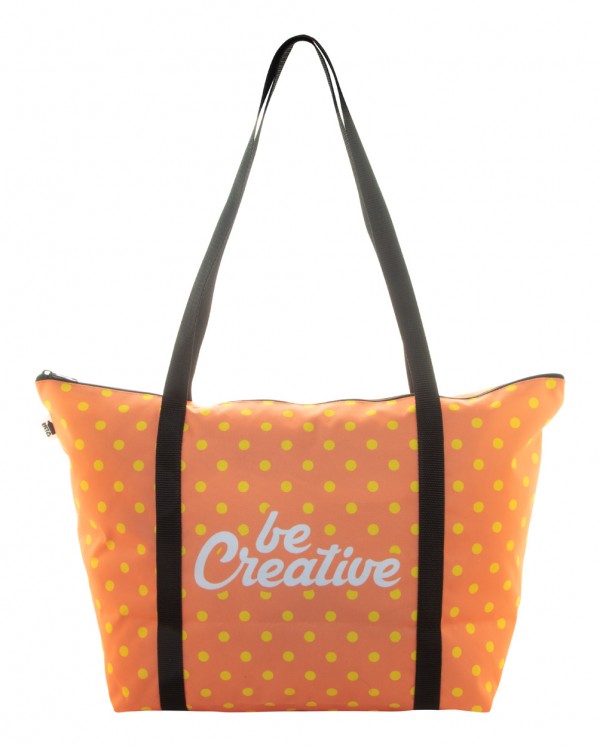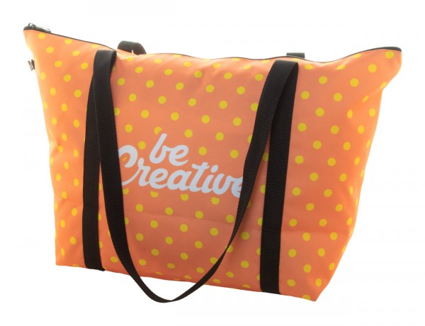 Geantă de plajă, realizată la comandă, cu fermoar, din poliester 600D RPET, cu mânere lungi. Cu grafică imprimată prin sublimare ?i etichetă RPET distinctivă. MOQ: 25 buc.