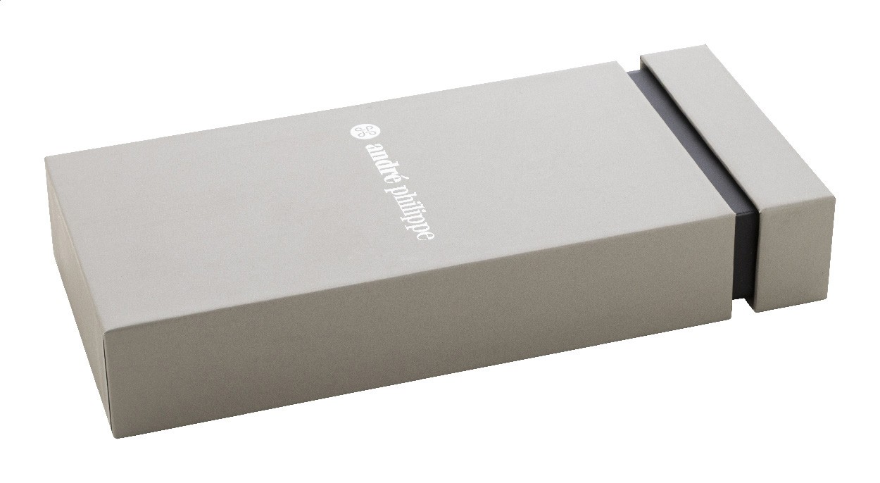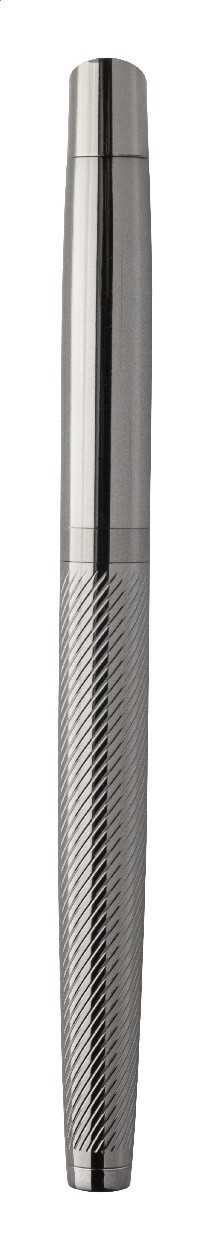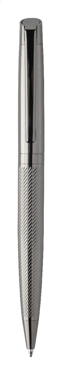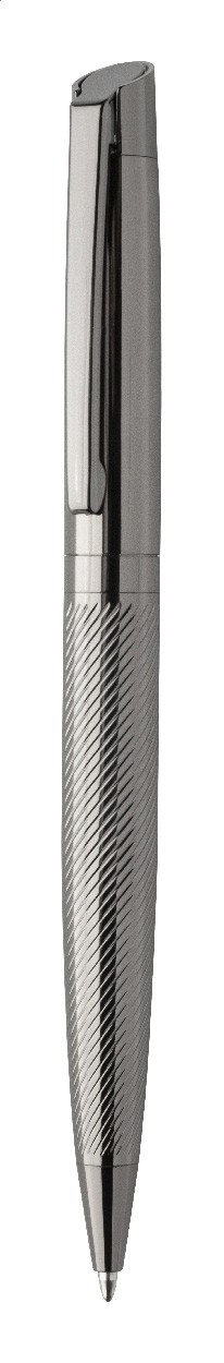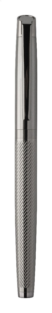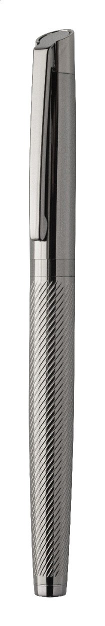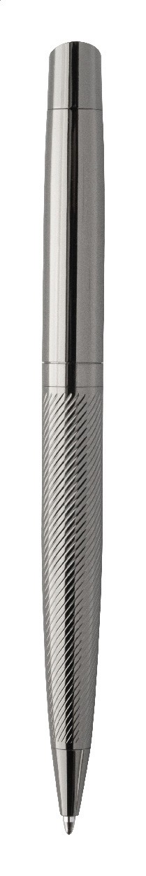 Set elegant de pix și roller, din metal, cu corp texturat diagonal. În cutie cadou în două culori, cu mină albastră. Produs marca André Philippe.