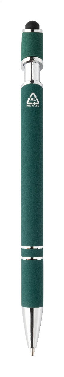 Pix cu bilă și capăt pentru ecran tactil, din aluminiu reciclat, cu corp cauciucat și detalii cromate. Cu mină albastră.