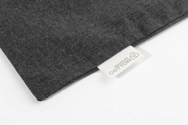 Sacoșă de cumpărături, cu mânere lungi, din 70% bumbac reciclat și 30% poliester RPET, 140 g/m². Cu etichetă distinctivă din bumbac reciclat.