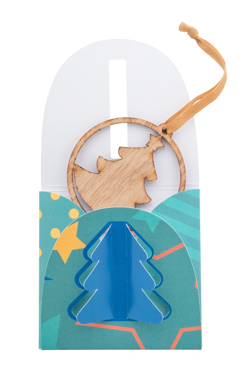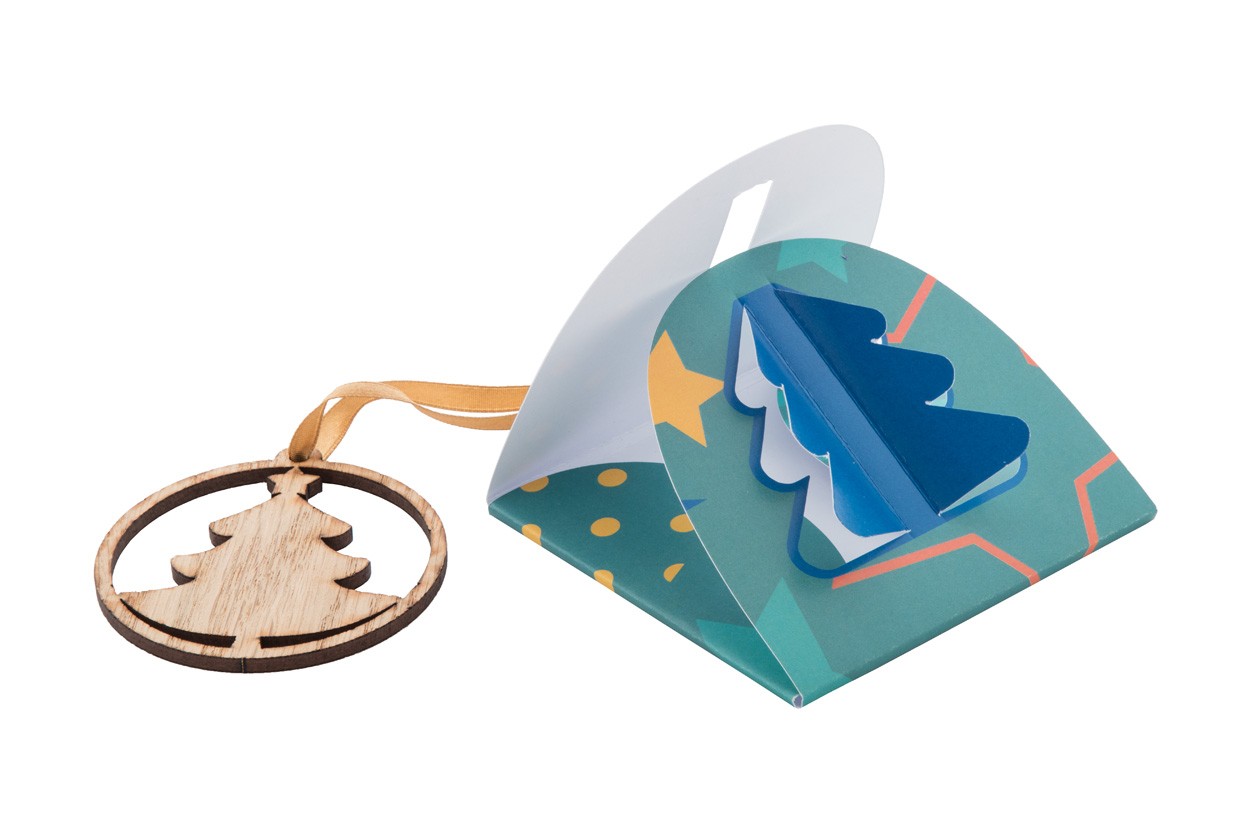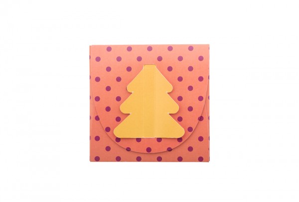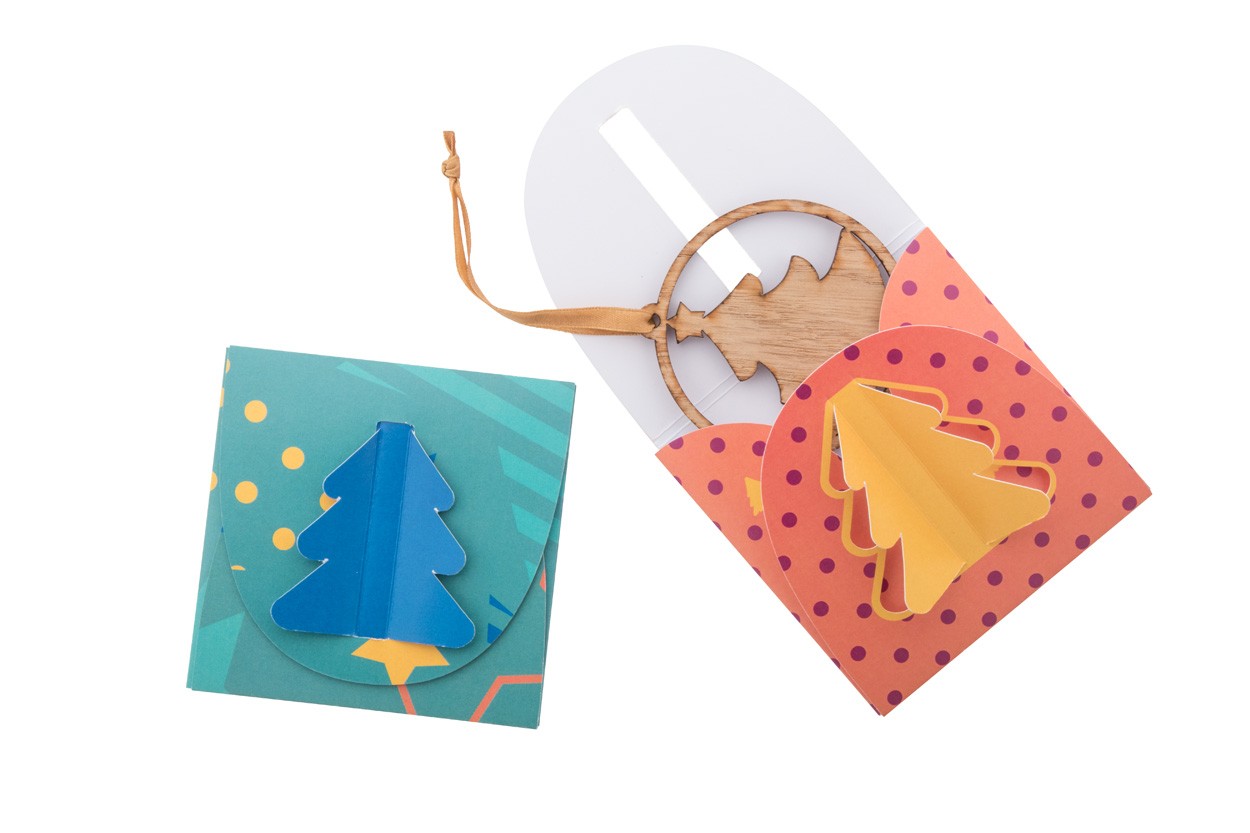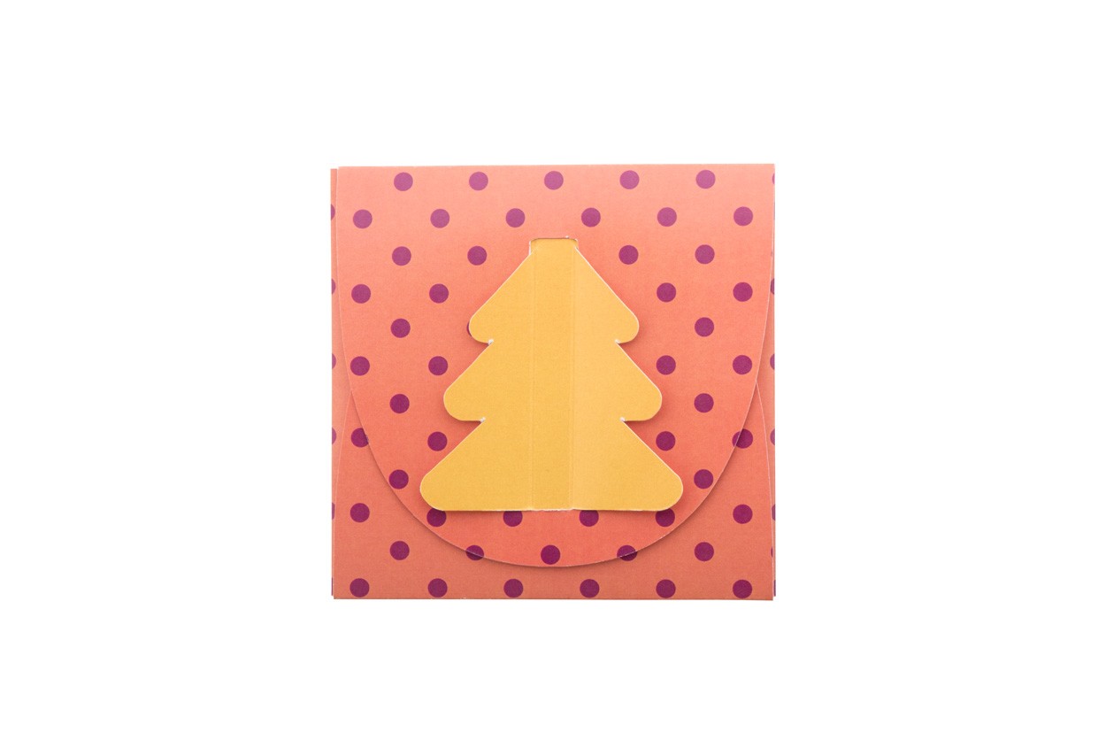 Plic din hârtie, imprimat la comandă, pentru împachetarea ornamentelor pentru brad, cu formă de pom de Crăciun tăiată. Fără ornament. MOQ: 50 buc.