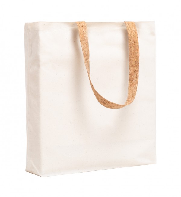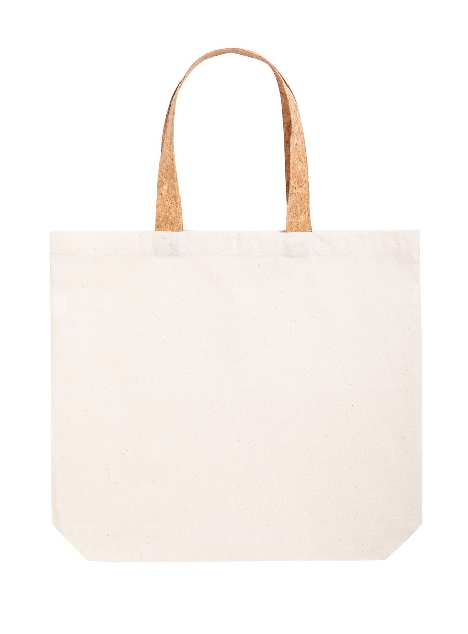 Sacoșă de cumpărături, din bumbac, cu mânere din plută naturală. 100% bumbac, 180 g/m².