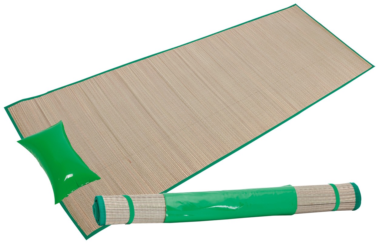 Covoraș de plajă din paie cu pernă gonflabilă din PVC.