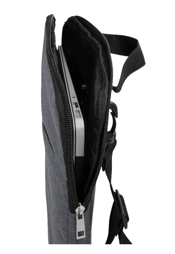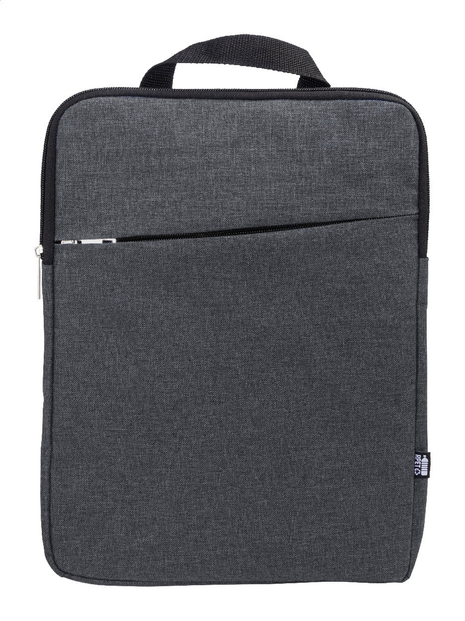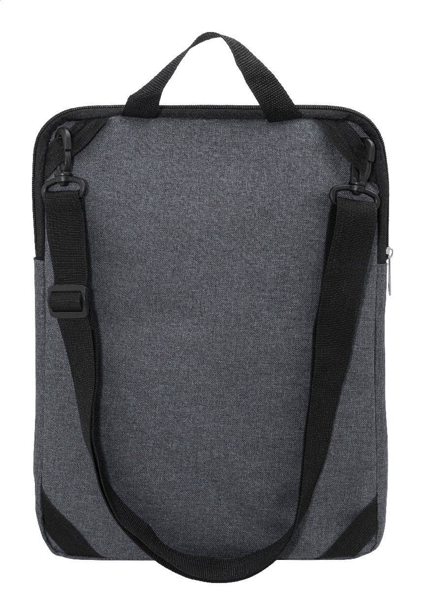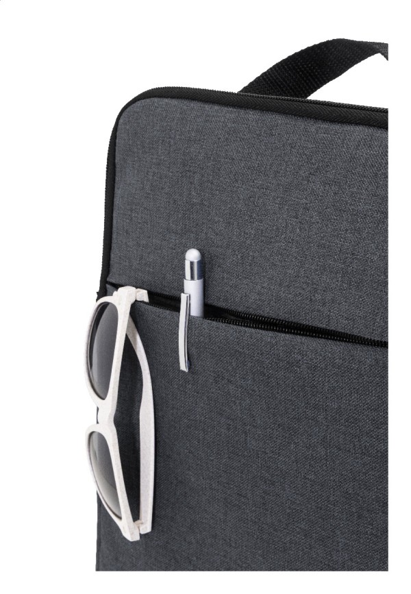 Geantă de umăr, căptușită, pentru documente sau laptop, din poliester 600D RPET, cu compartiment cu fermoar și buzunar frontal cu fermoar. Potrivită pentru laptopuri de până la 15". Cu curea de umăr reglabilă în poziție verticală și orizontală. Cu etichetă distinctivă RPET.