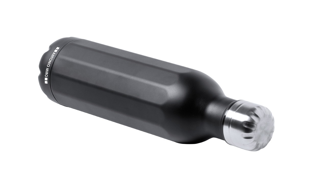 Termos in formă de sticlă, din oțel inoxidabil cu perete dublu, 500 ml. Produs marca Antonio Miro. Nu este potrivit pentru băuturi carbogazoase.