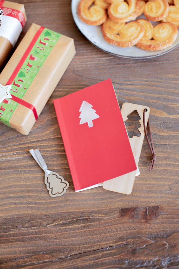 Semn de carte din placaj din bambus cu motiv de Crăciun tăiat și șnur din piele PU.