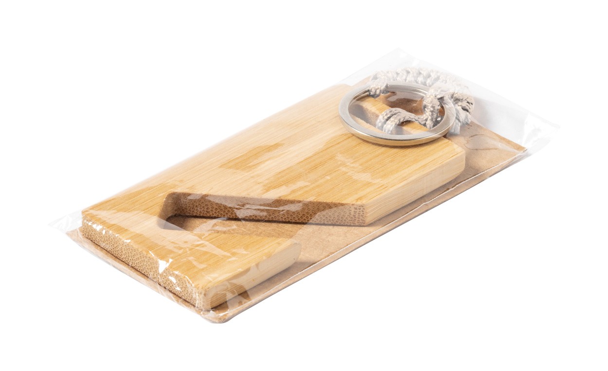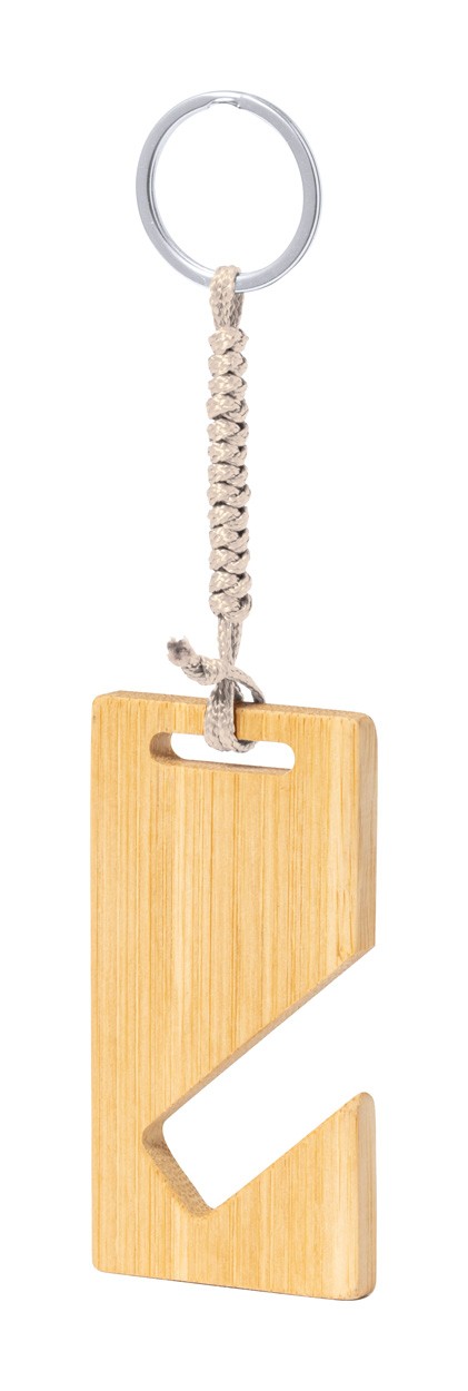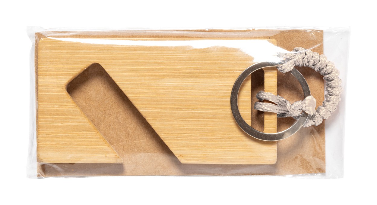 Breloc pentru telefon suport mobil, din bambus, cu inel metalic atașat șir.