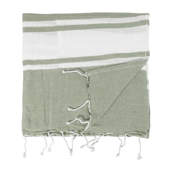 Tortuga prosop de plajă, din bumbac reciclat și sac cu șnur verde