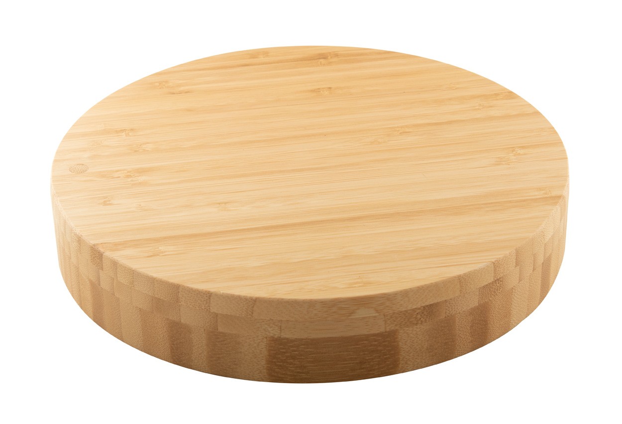 Placă de tăiere rotundă din bambus cu set de 4 cuțite pentru tăiat brânză din oțel inoxidabil.