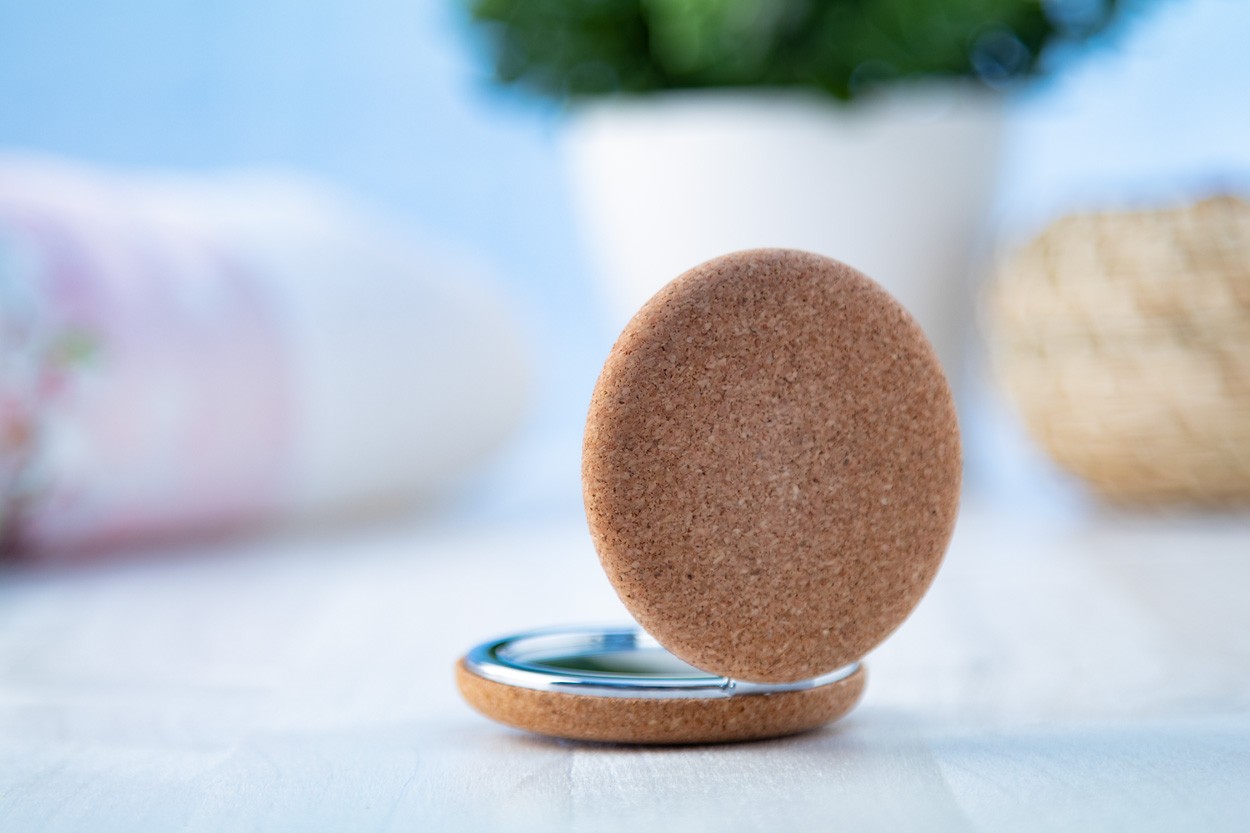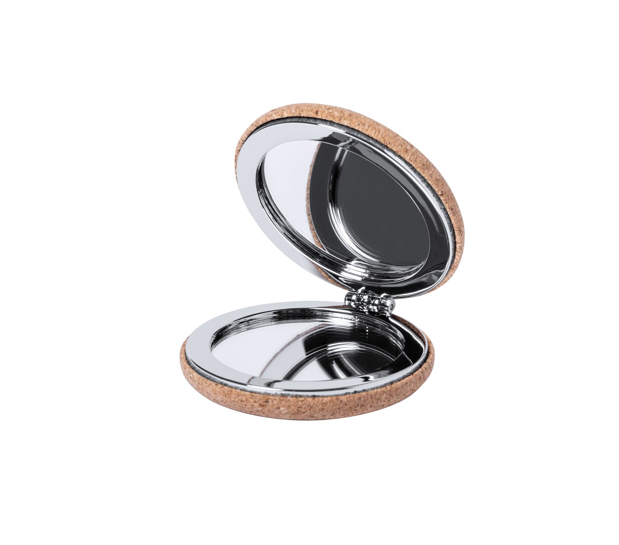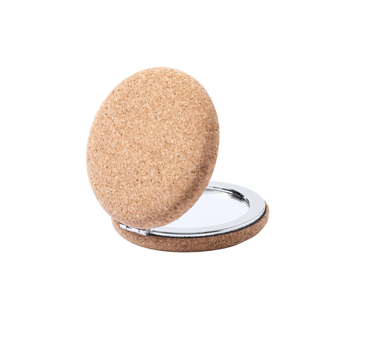 Oglindă de buzunar, acoperită cu plută naturală, cu o parte normală și una lupă.