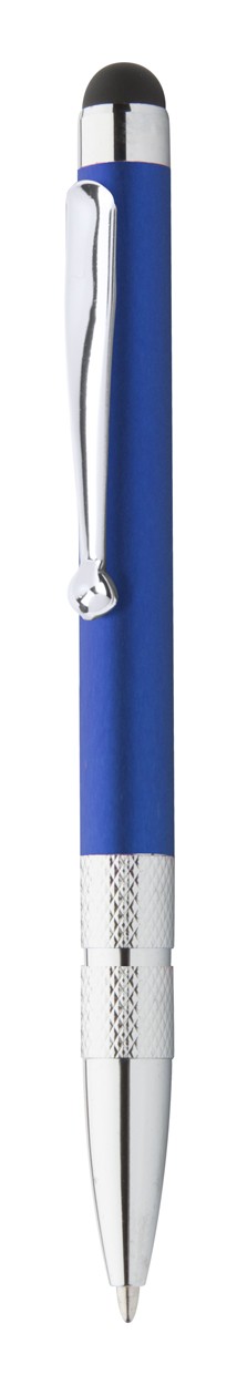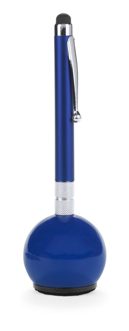Pix touch screen din plastic, cu suport , cu instrument din microfibre pentru curățarea ecranului. Mină albastră.