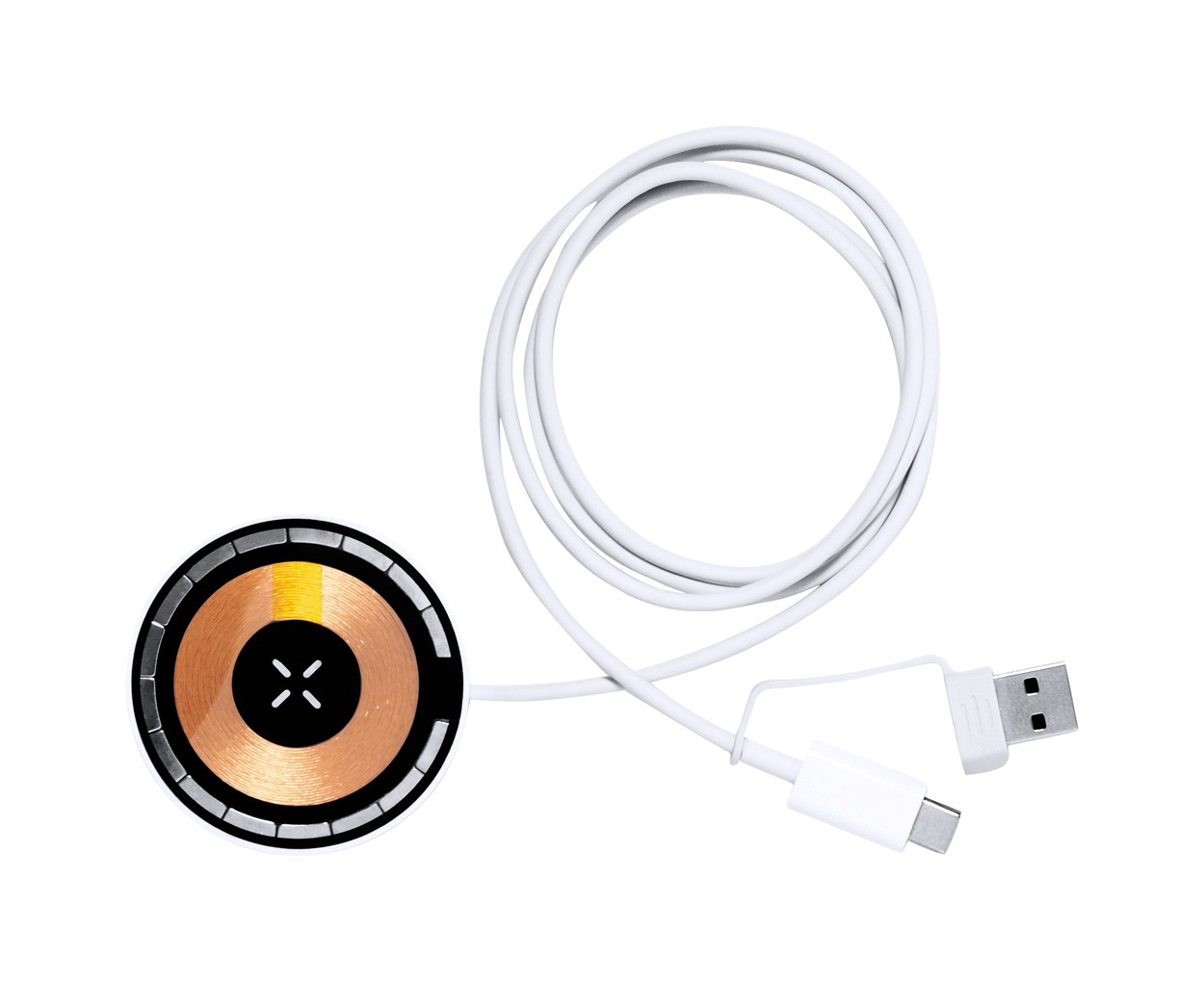 Încărcător rapid fără fir, magnetic, semi-transparent (15W) în carcasă din plastic ABS. Include inel metalic autoadeziv pentru a utiliza funcția magnetică pe orice dispozitiv de încărcare fără fir. Inclusiv cablu de încărcare USB cu conectori USB și USB-C.