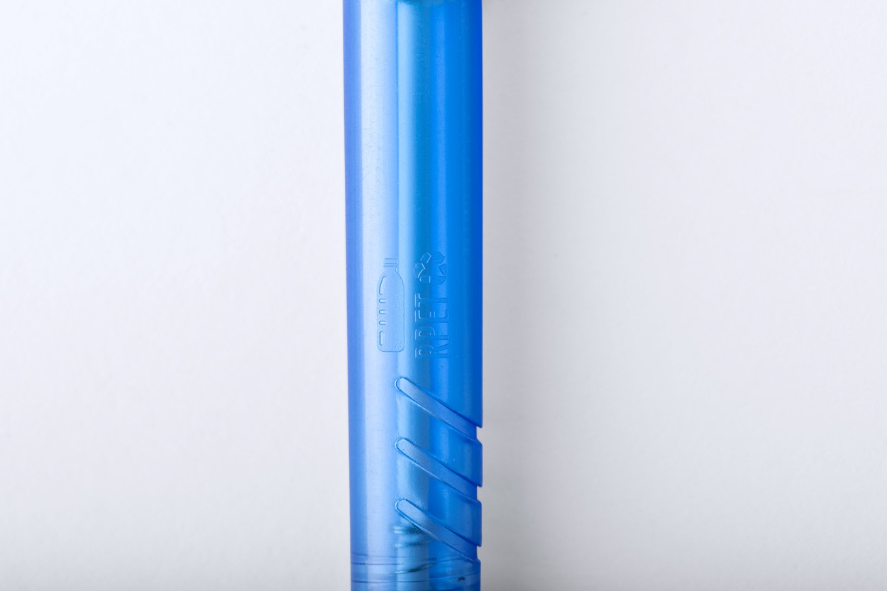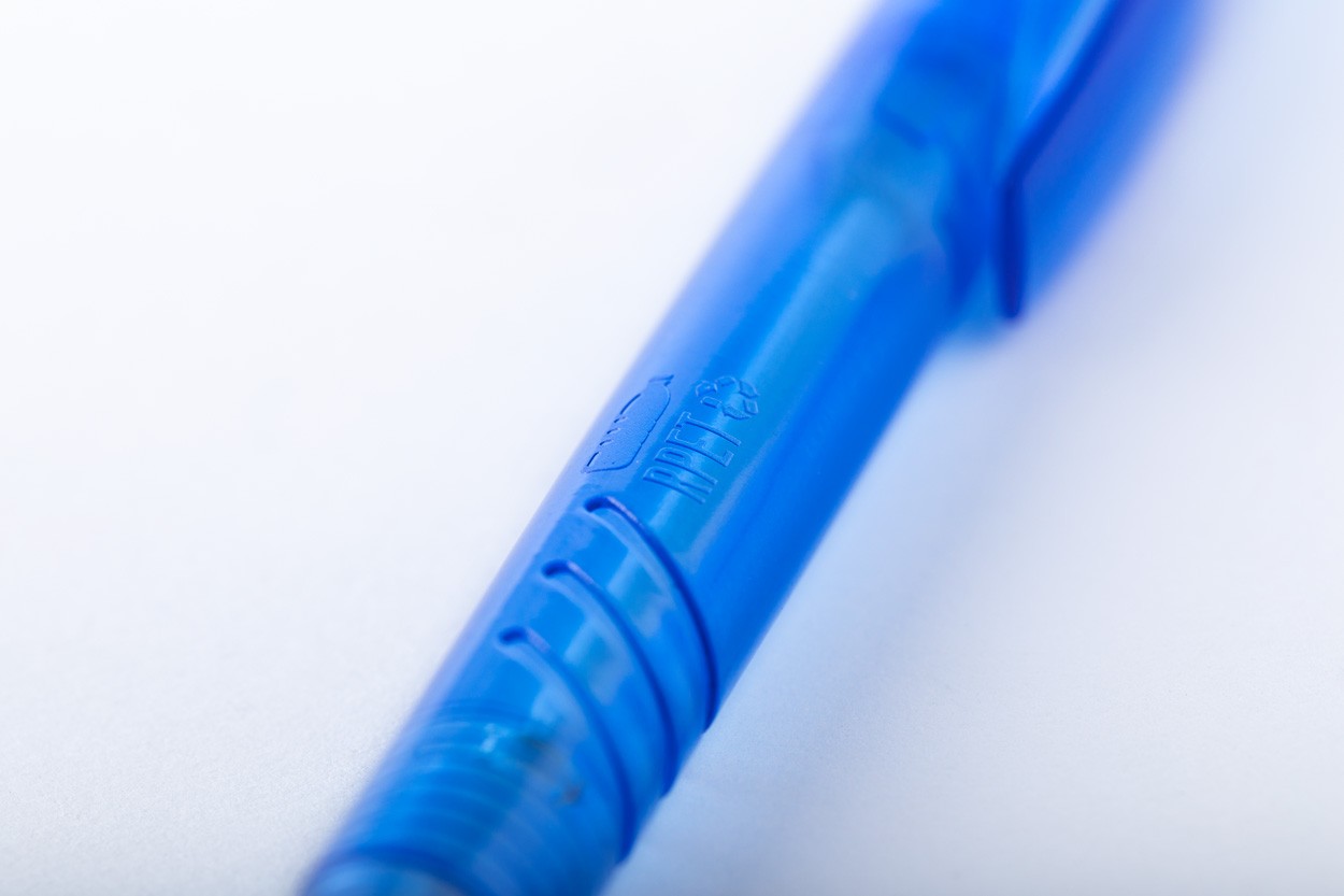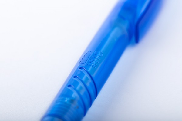 Pix transparent, din plastic reciclat RPET. Cu mină albastră.