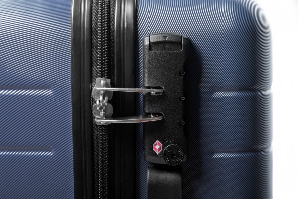 Geantă de cărucior din plastic RPET cu 4 roți duble, mâner telescopic și blocare combinată TSA. Cu căptușeală interioară RPET și curele elastice de fixare. Cu semn distinctiv RPET.