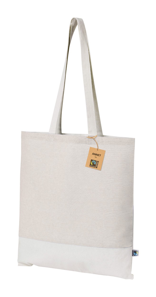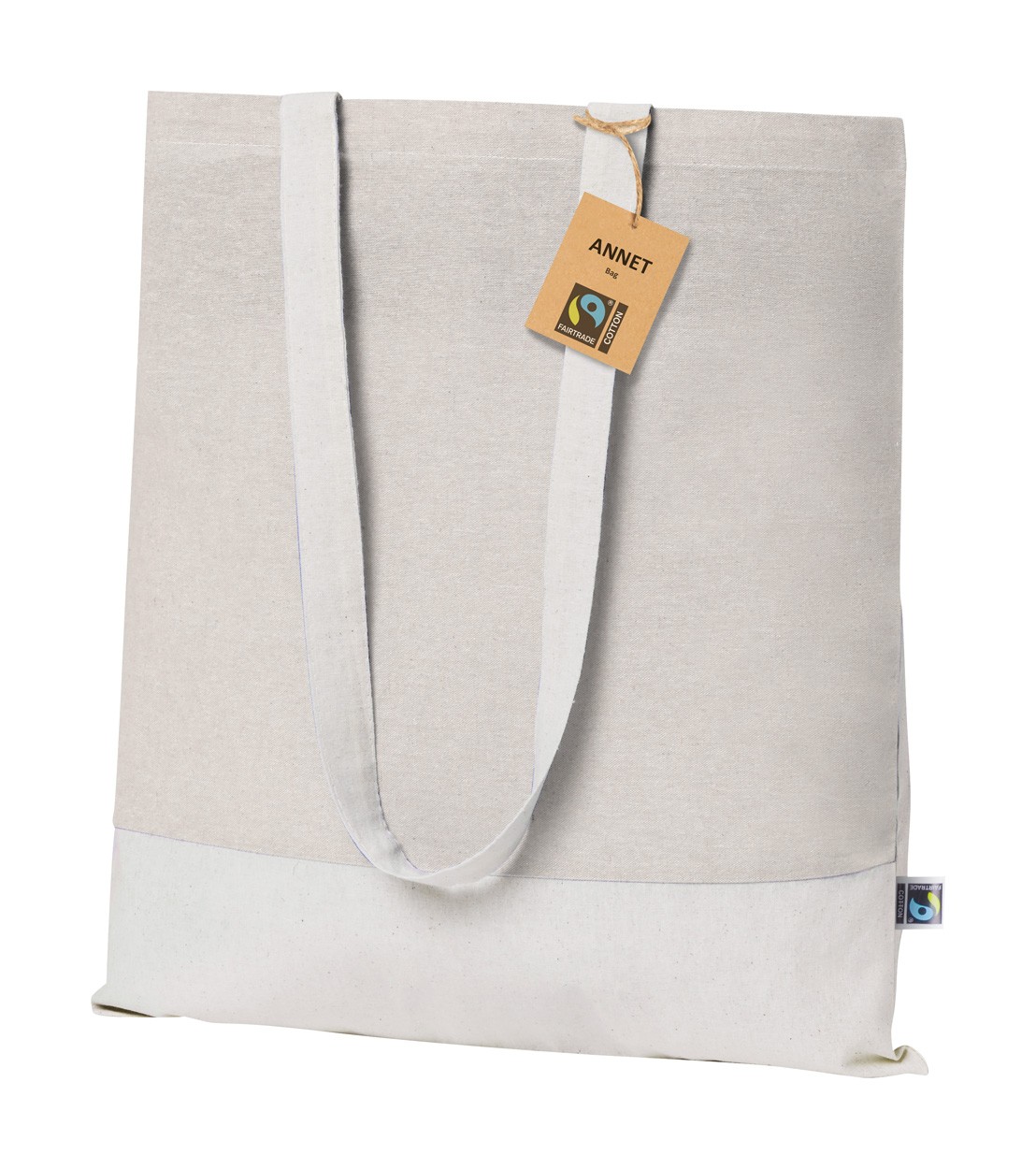 Sacoșă de cumpărături, din bumbac Fairtrade, reutilizabilă, în două tonuri, cu mânere lungi. 100% bumbac Fairtrade, 140 g/m². Cu etichetă distinctă Fairtrade.