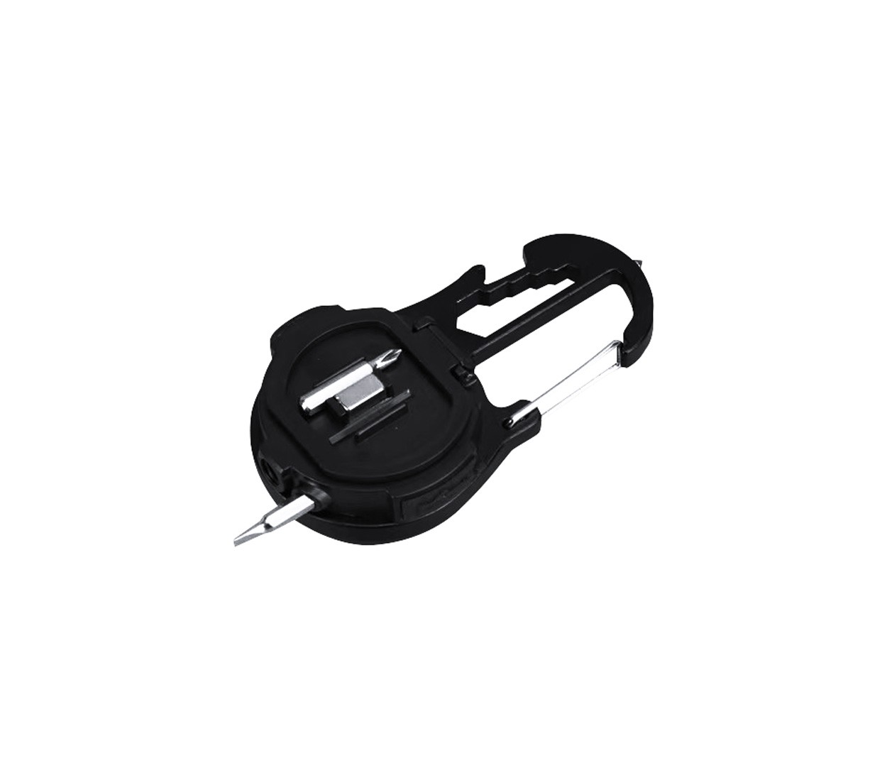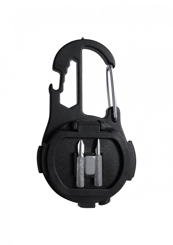 Aluminium multitool with 20 COB lights, 3 light modes, 10 functions and carabiner. With built-in rechargeable battery.