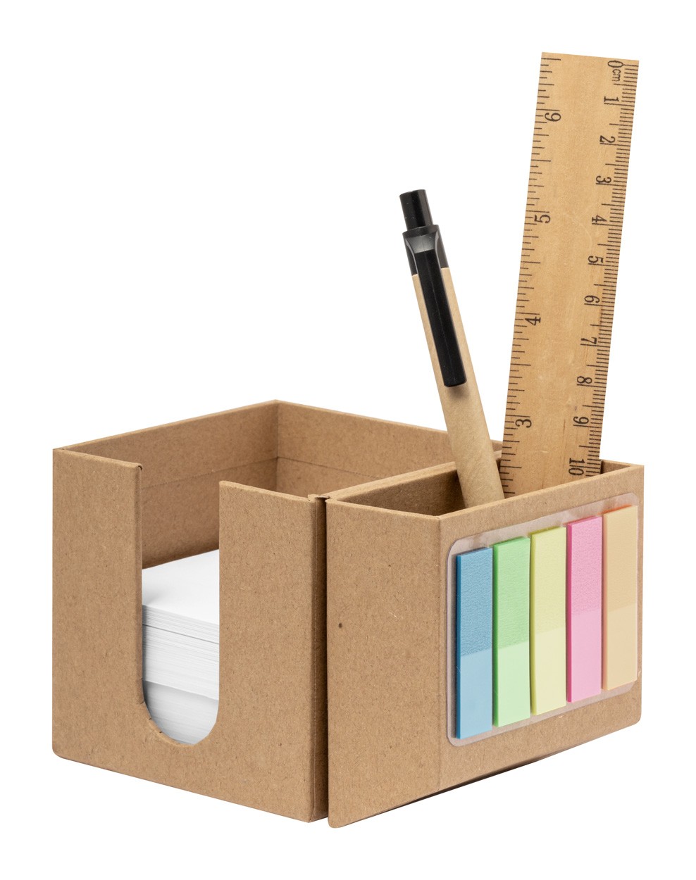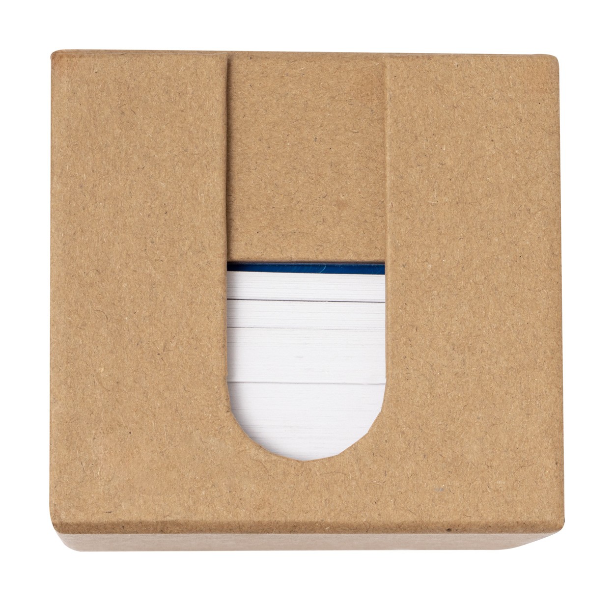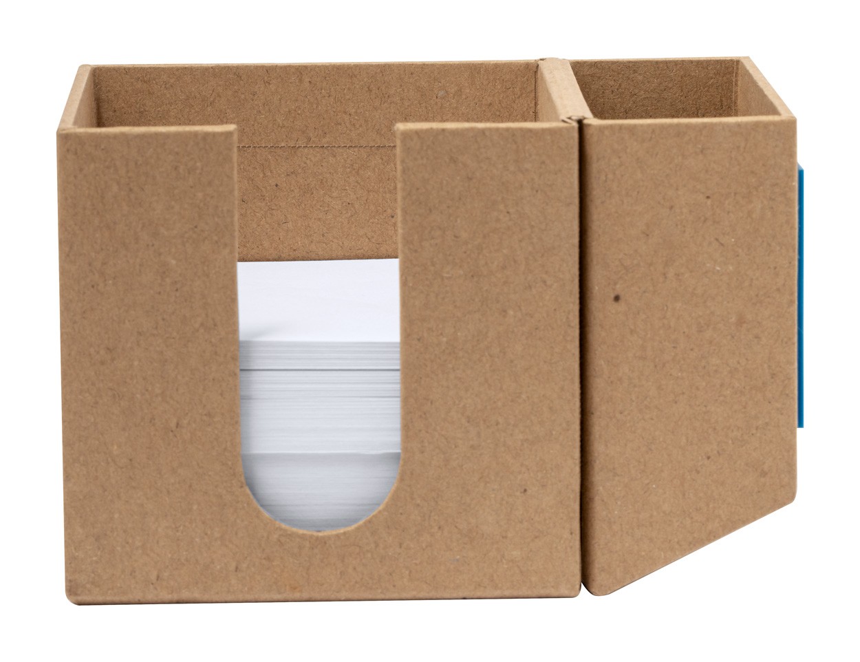 Multifunctional note dispenser with desk pen holder in recycled cardboard. Including 320 sheets paper memo block and 125 page markers in 5 colours.