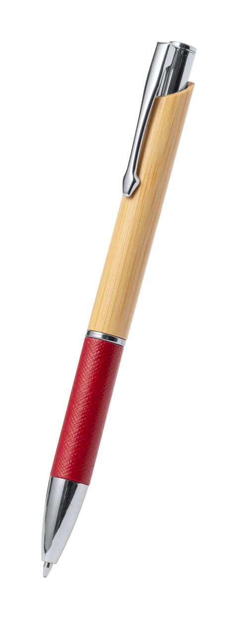 Pix cu copr din bambus, mâner din carton reciclat, clemă metalică și mină albastră.