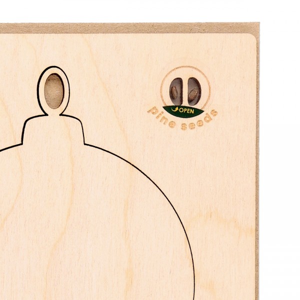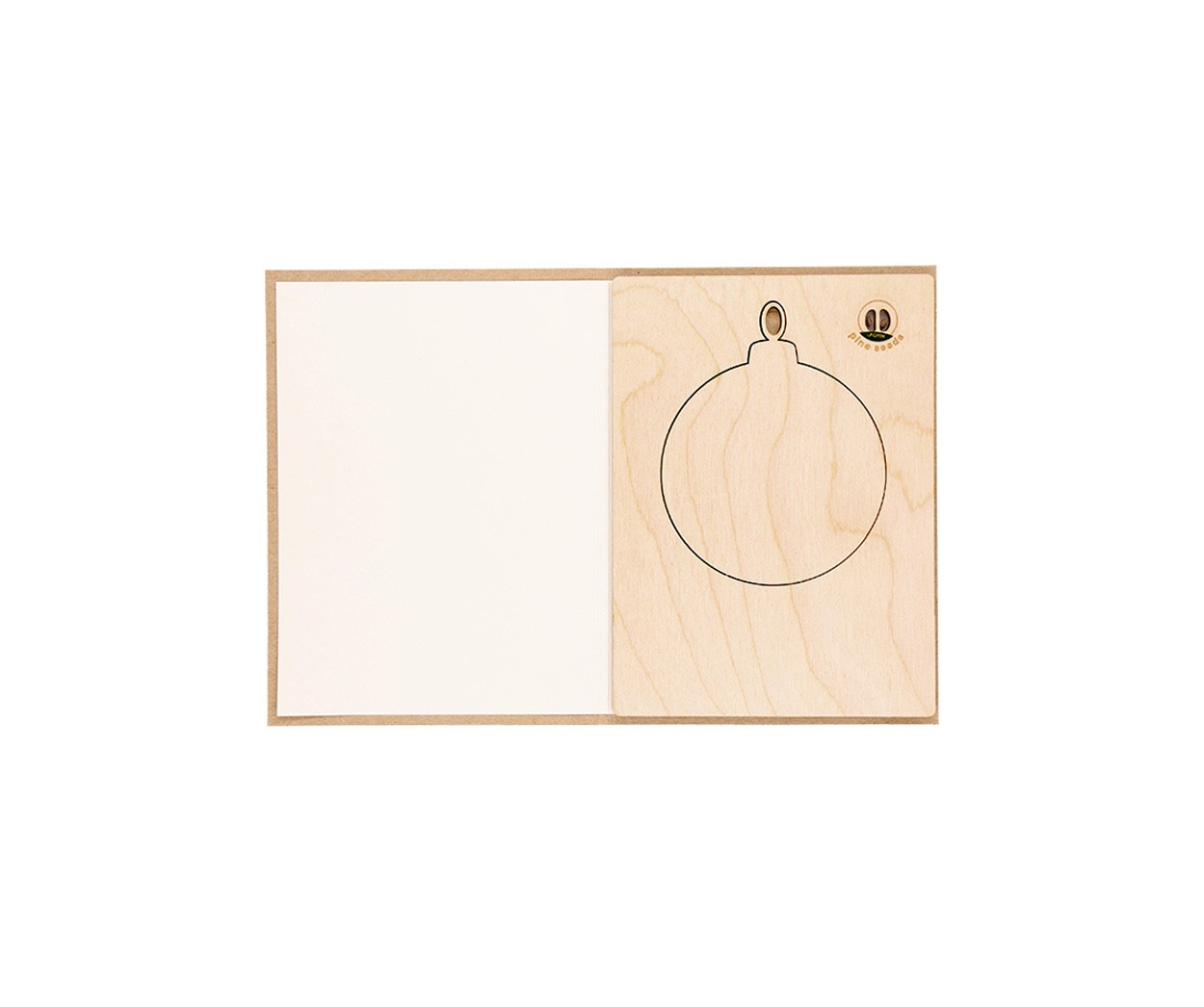Felicitare de Crăciun, din hârtie kraft cu semințe de pin plantabile, inclusiv ornament din lemn pentru pom de Crăciun și plic poștal C6.