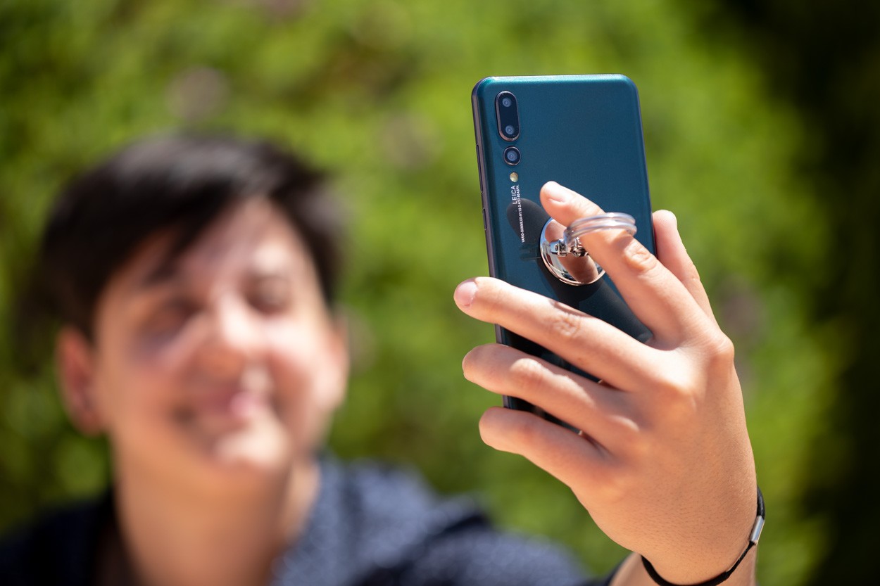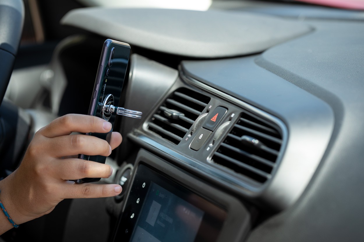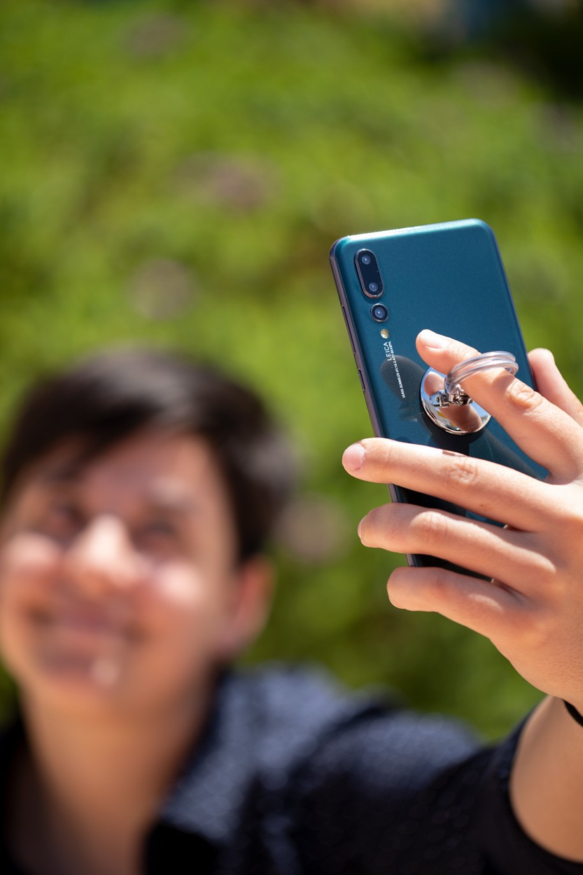 Suport inel din metal pentru telefon mobil, cu adeziv.