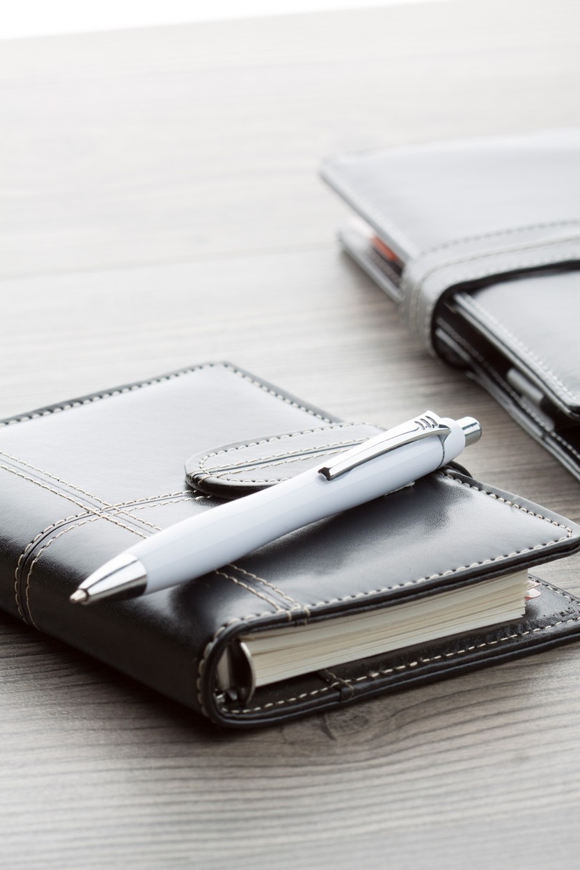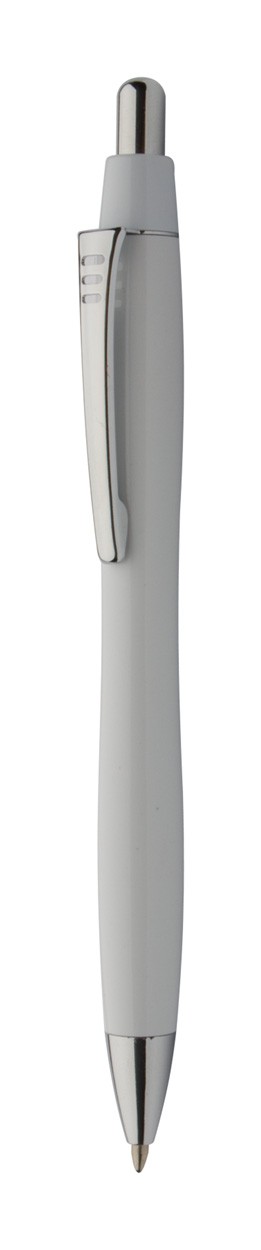 Pix din plastic, clip metalic, capete cromate, mină albastră.