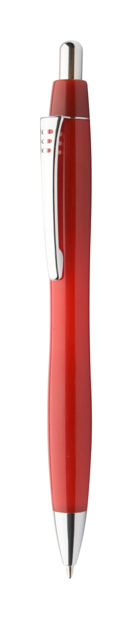 Pix din plastic, clip metalic, capete cromate, mină albastră.