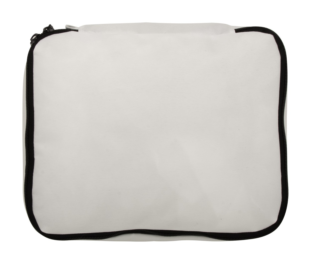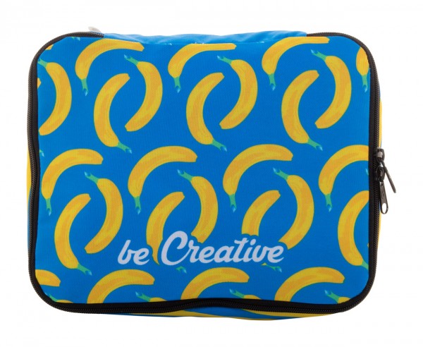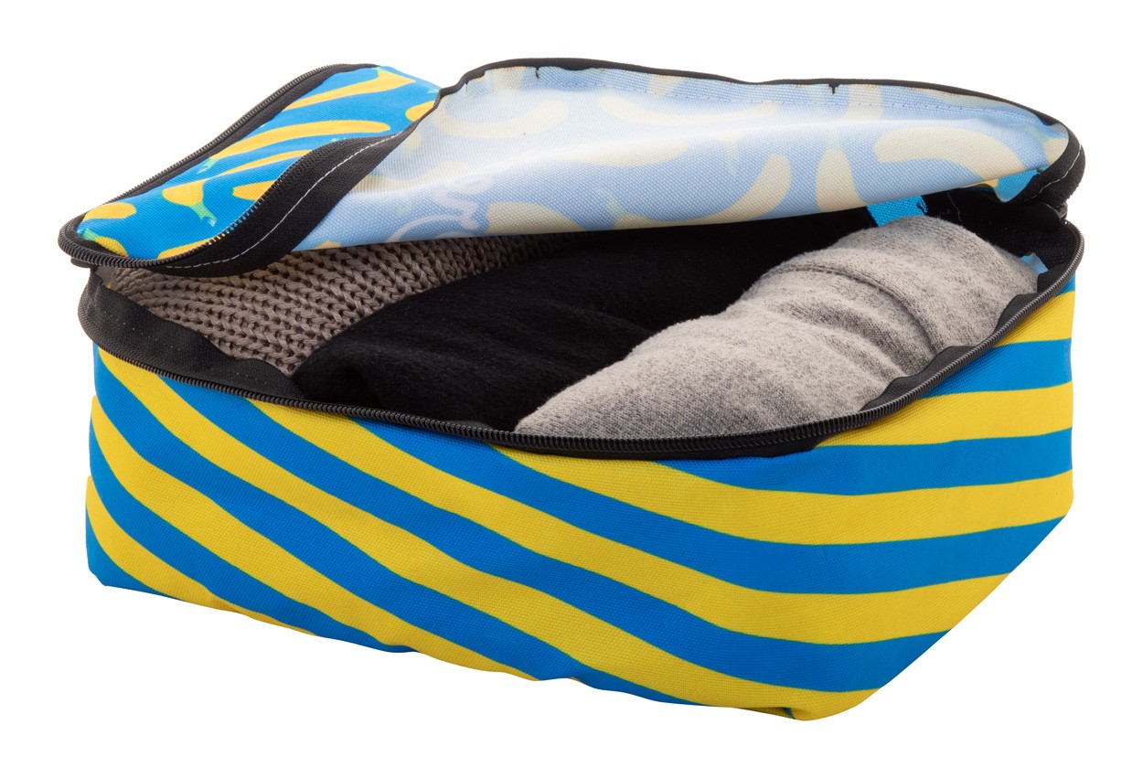 Organizator pentru bagaje, realizat la comandă, cu fermoar, din poliester 600D RPET. Cu grafică imprimată prin sublimare și etichetă RPET distinctivă. MOQ: 25 buc.