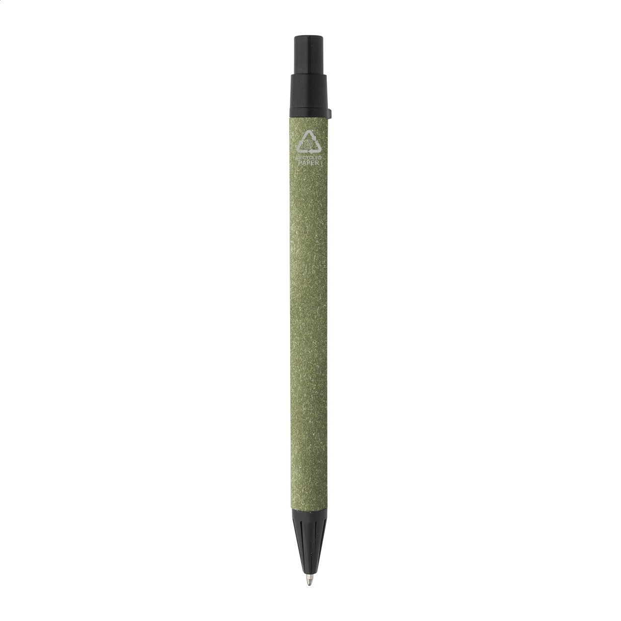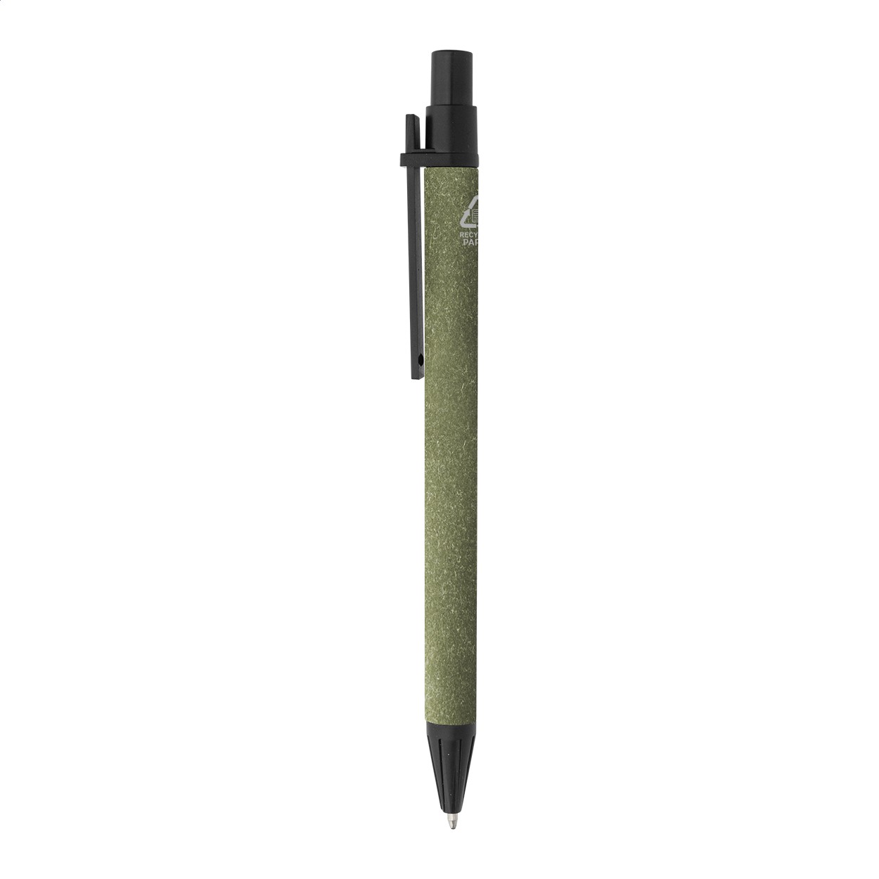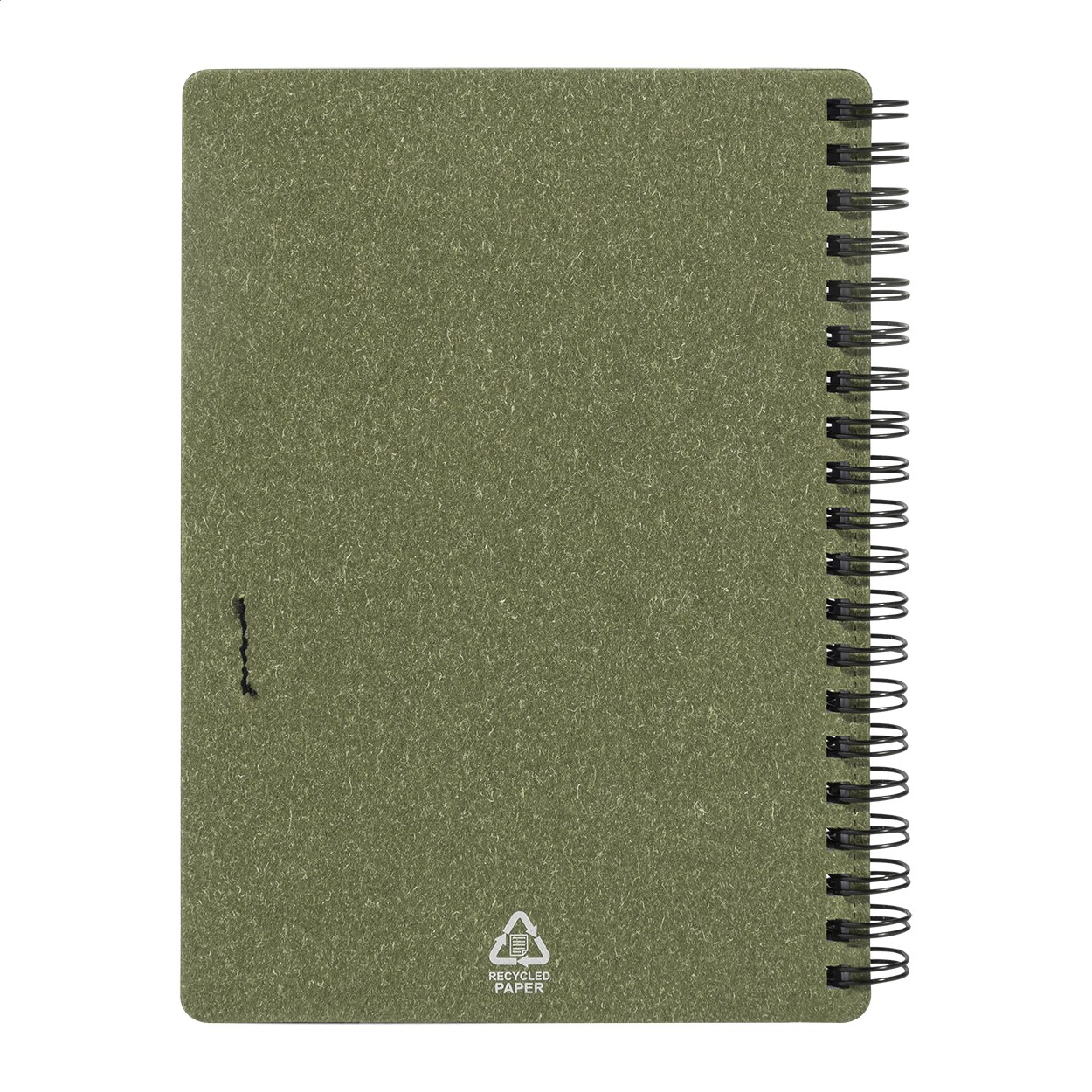 Caiet cu spirală, din hârtie reciclată, cu 80 de file dictando. Format A6. Include hârtie reciclată și pix din PP reciclat cu mină albastră.