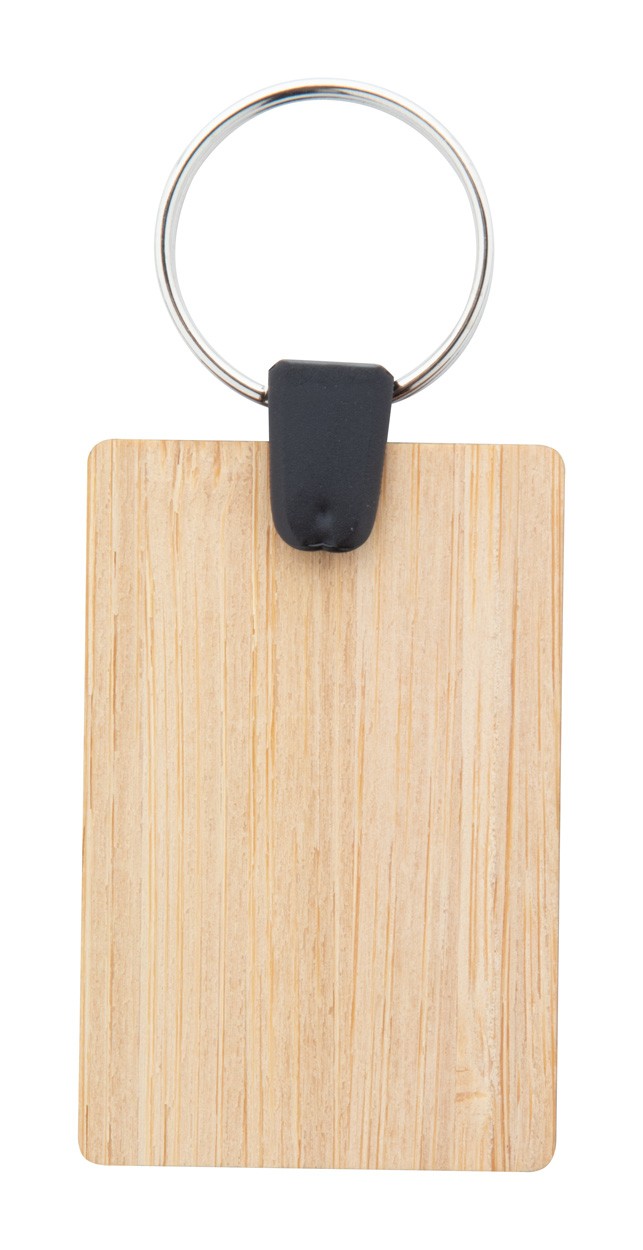 Breloc din placaj de bambus cu inel metalic.